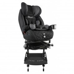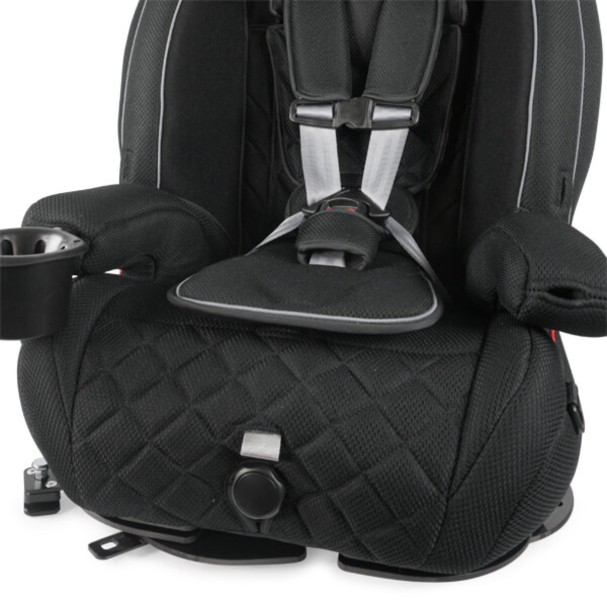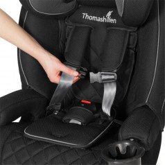 Мягкий подголовник регулируется по высоте с помощью рычага на спинке. Плечевые ремни с мягкой накладкой также возможно отрегулировать по мере роста пользователя. Подстаканник устанавливается как с левой, так и с правой стороны.