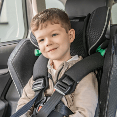 Кресло формирует стабильную посадку и поддерживает физиологически правильное положение тела во время движения. Анатомическая форма сиденья и спинки в сочетании с эргономичным дизайном и усиленной боковой защитой повышает уровень безопасности и снижает утомляемость в дороге. Регулируемый подголовник, боковые опоры и направляющие элементы позволяют точно адаптировать кресло под индивидуальные параметры ребёнка.