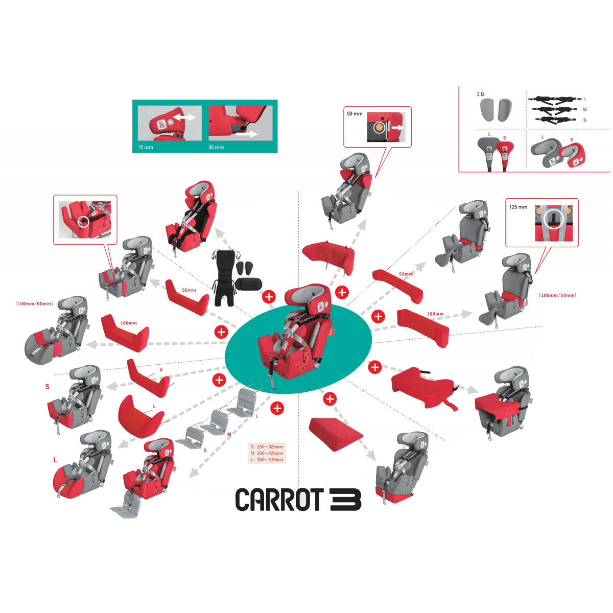 Marubishi Carrot 3 (Марюбиши Кэррот 3) — вместительное автокресло с высокими стандартами безопасности и максимальным уровнем комфорта. Оно предлагает привычные функции автокресла для реабилитации и может быть индивидуально отрегулировано с помощью широкого набора аксессуаров. Кресло выпускается в трёх размерах и подходит детям в возрасте от 2 до 15 лет и ростом до 145 см.