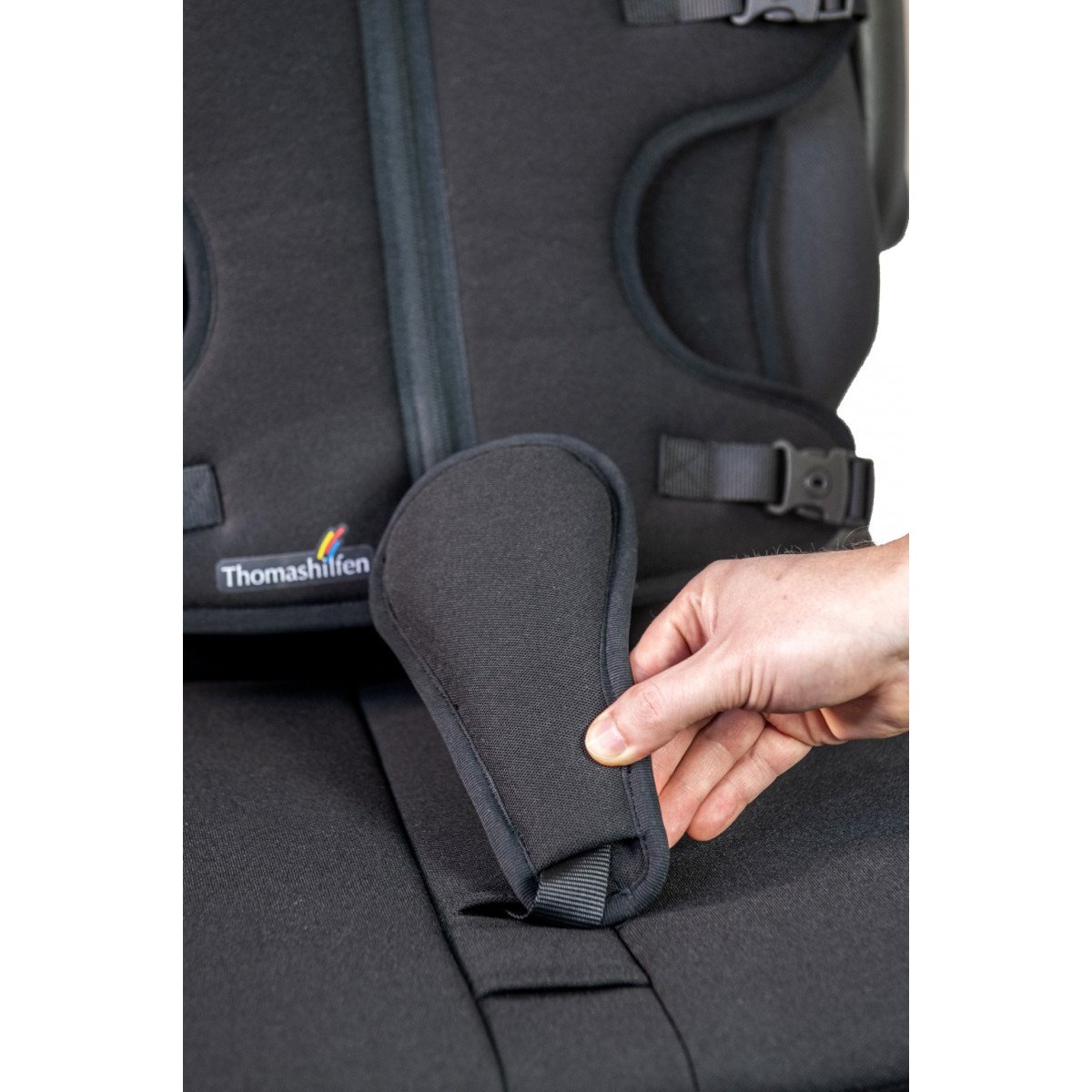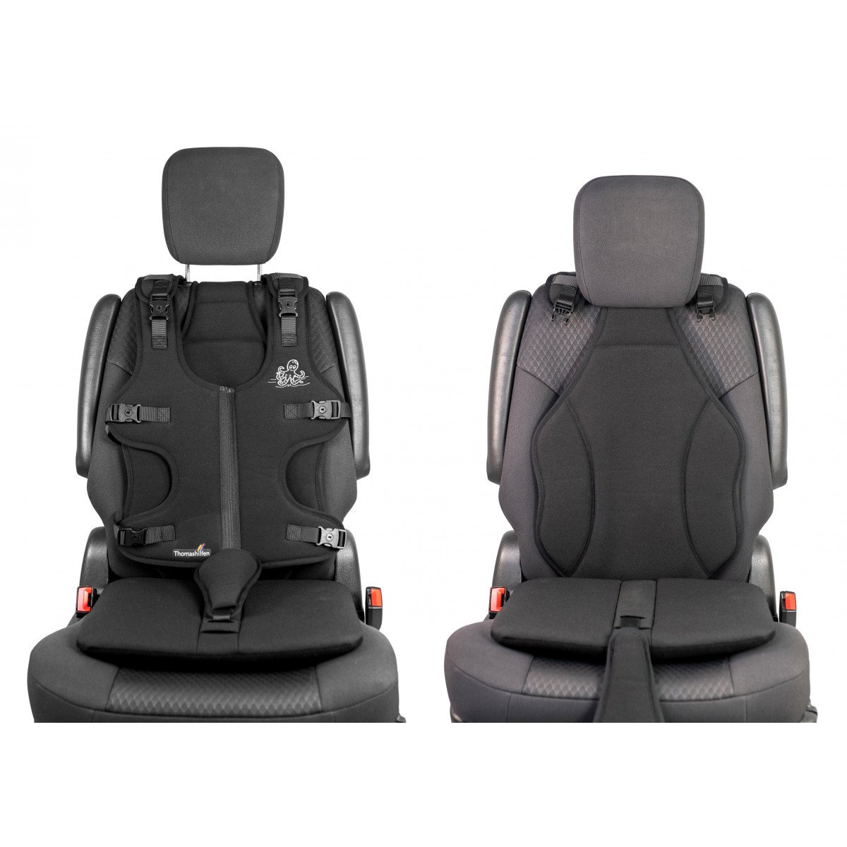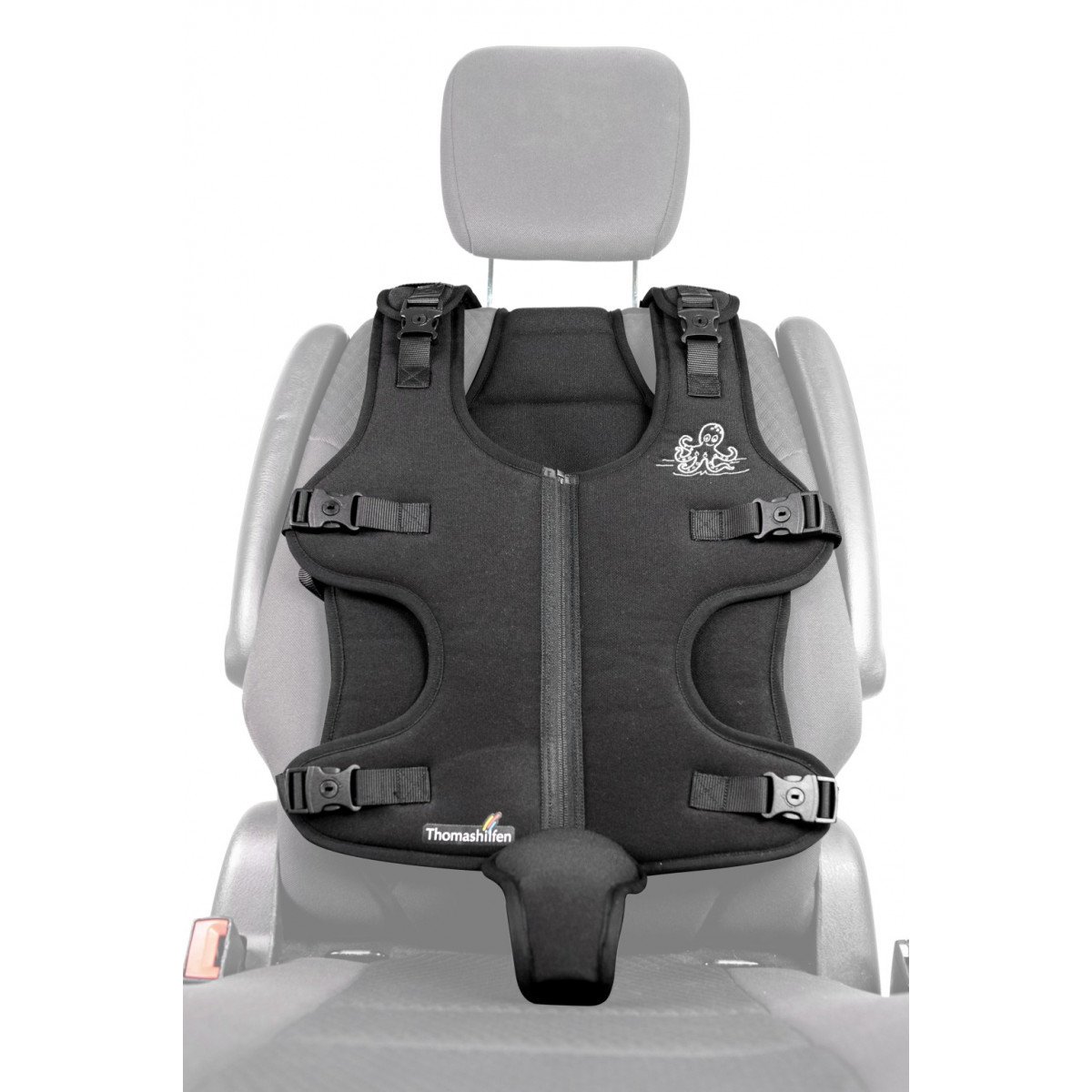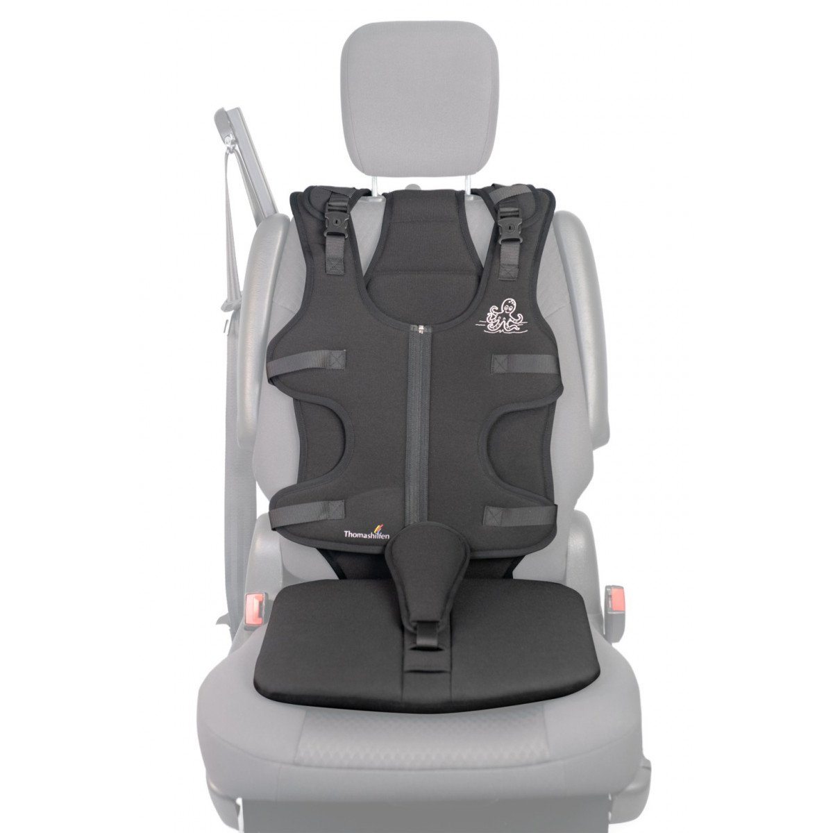 Позиционный жилет Thomashilfen Octopus (Томасхилфен Октопус) предлагает систему, которая поддерживает правильное положение пользователя в автомобиле. Это особенно важно, если трехточечный ремень безопасности автомобиля не обеспечивает достаточную поддержку. Жилет равномерно распределяет нагрузку по телу, что значительно снижает риск травм при резком торможении.