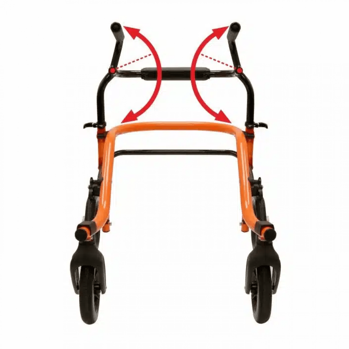 Ортопедические ходунки Go.Spider имеют функциональные передние колёса с возможностью блокировки направления движения, что даёт пользователю больший контроль во время движения. Задние колёса ходунков Go.Spider оснащены регулируемым замедлителем, который снижает скорость движения при затягивании винта. Они также имеет защиту от неконтролируемого движения назад, что оказывает существенное влияние на безопасность при использовании.