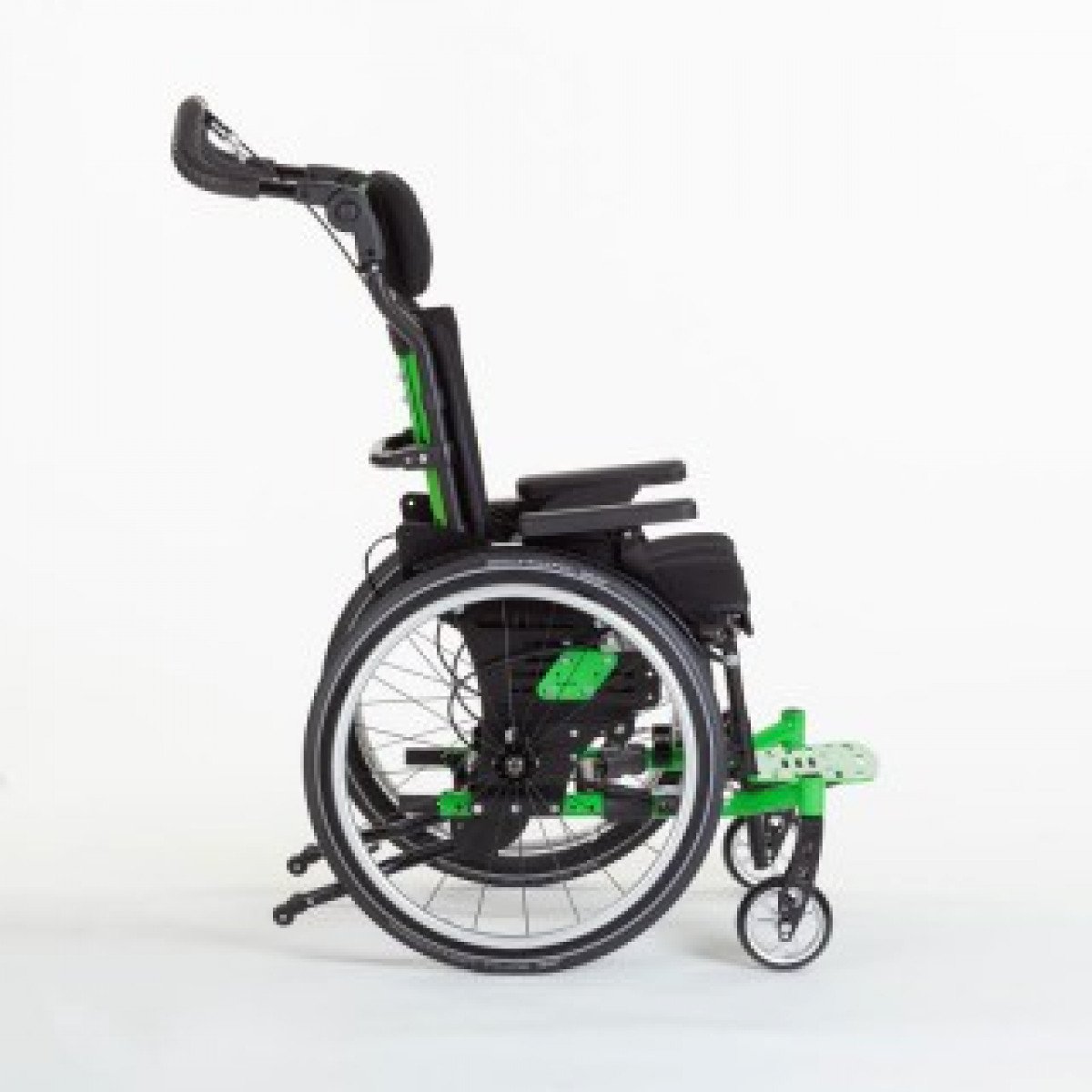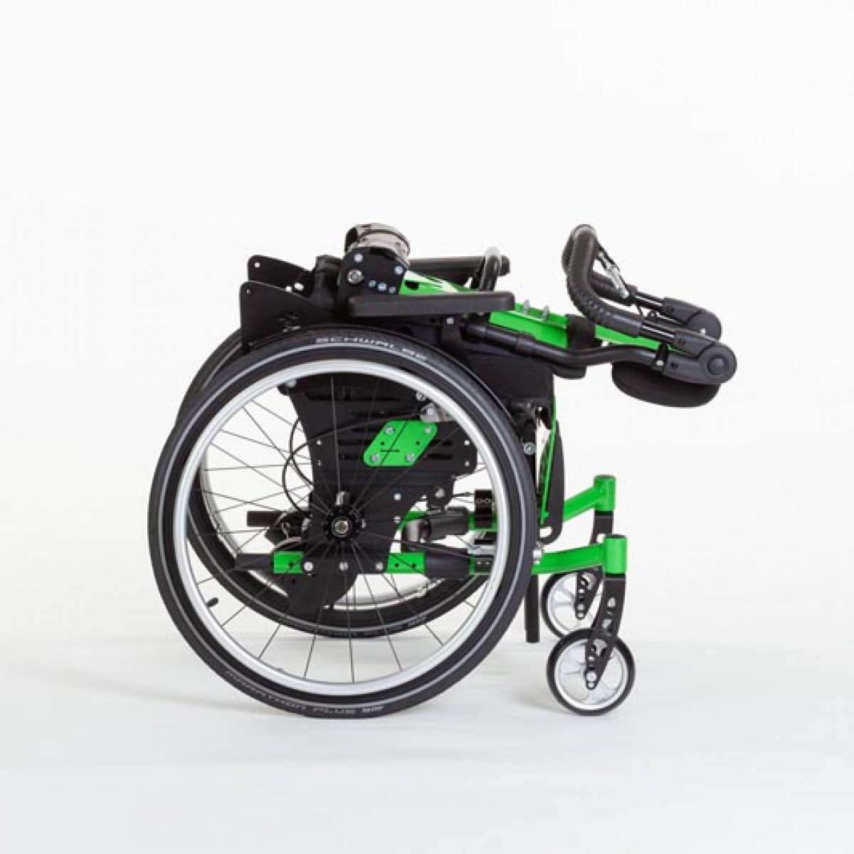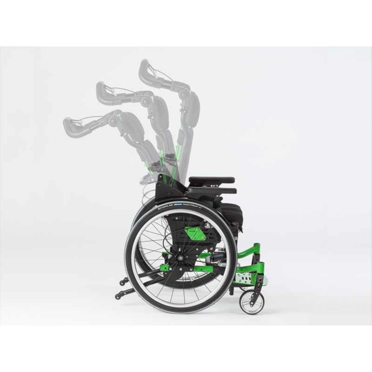 Ось ведущего колеса установлена на подшипниковых опорах, что обеспечивает возможность её перемещения в продольном направлении по пяти ступеням. Эта возможность регулировки позволяет адаптировать "степень активности" в зависимости от состояния ребёнка и его потребностей. А регулировка угла сиденья сконструирована таким образом, что точка поворота находится рядом с центром тяжести и её положение при регулировке угла остаётся неизменным.