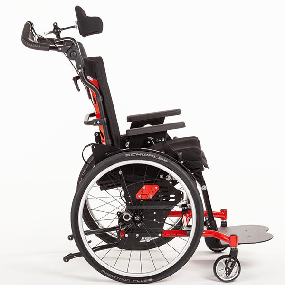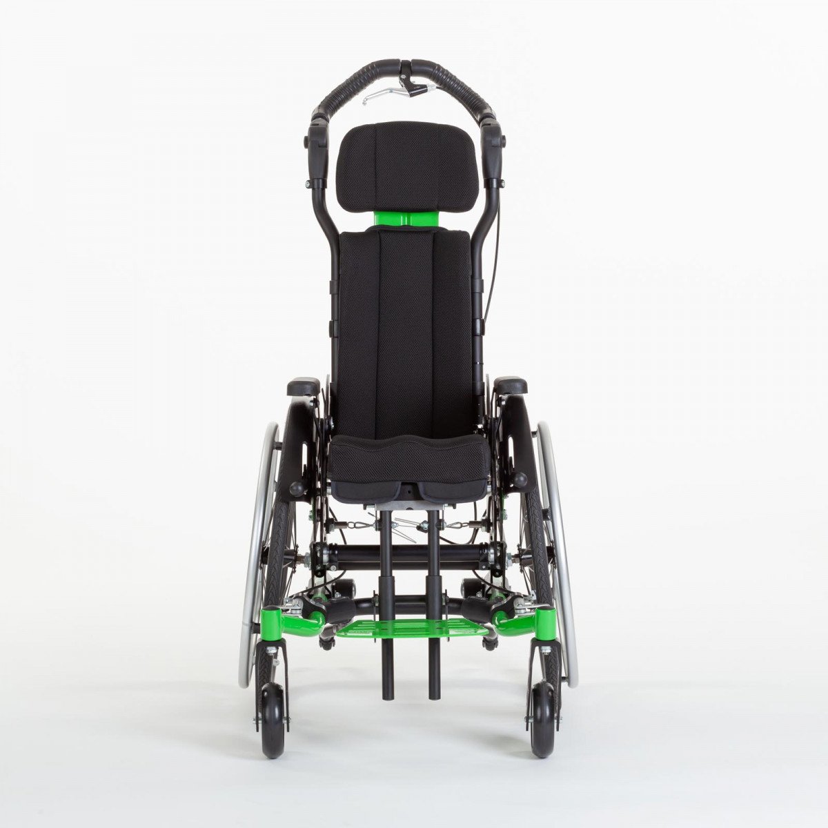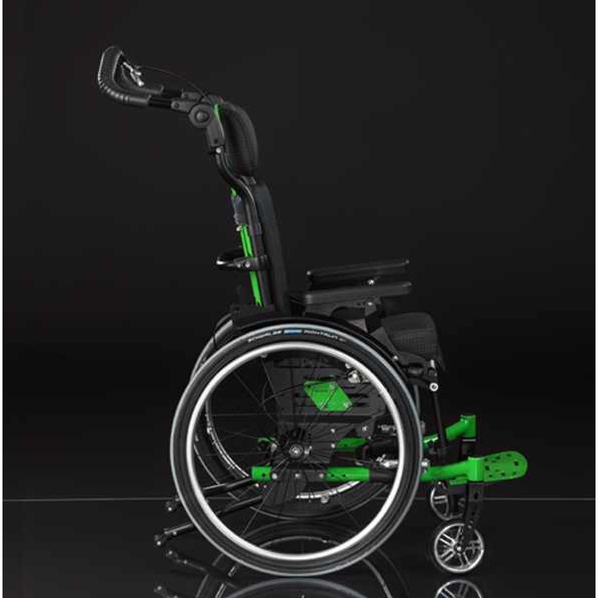Ось ведущего колеса установлена на подшипниковых опорах, что обеспечивает возможность её перемещения в продольном направлении по пяти ступеням. Эта возможность регулировки позволяет адаптировать "степень активности" в зависимости от состояния ребёнка и его потребностей. А регулировка угла сиденья сконструирована таким образом, что точка поворота находится рядом с центром тяжести и её положение при регулировке угла остаётся неизменным.