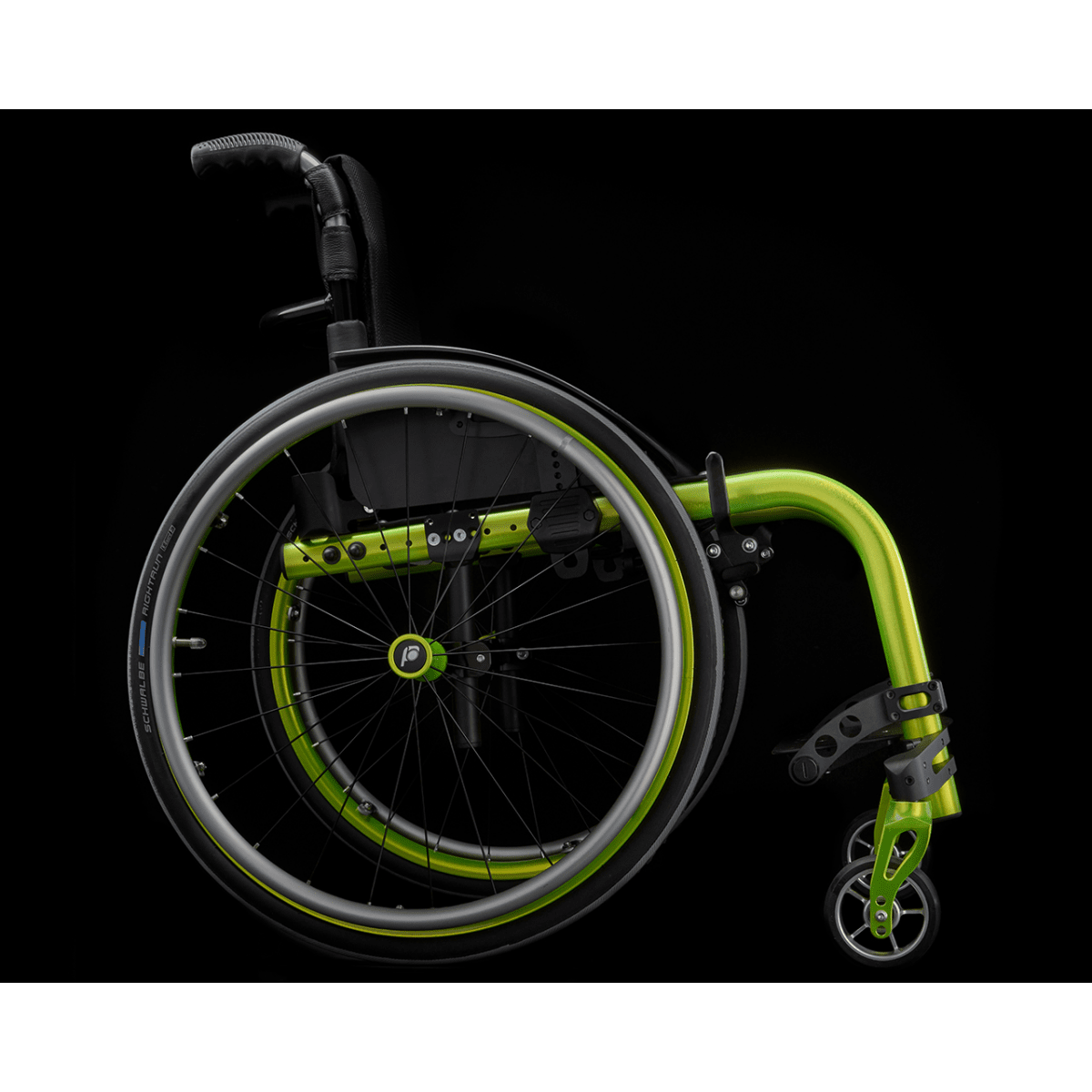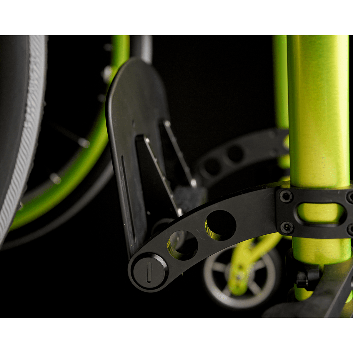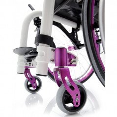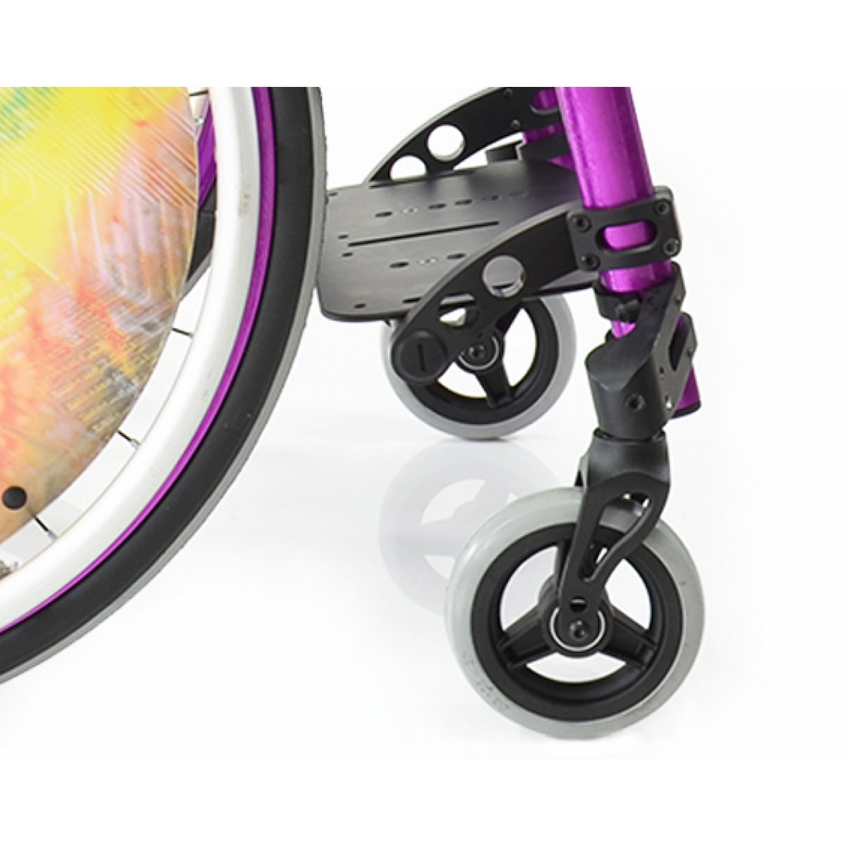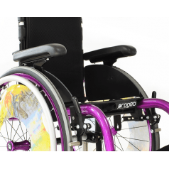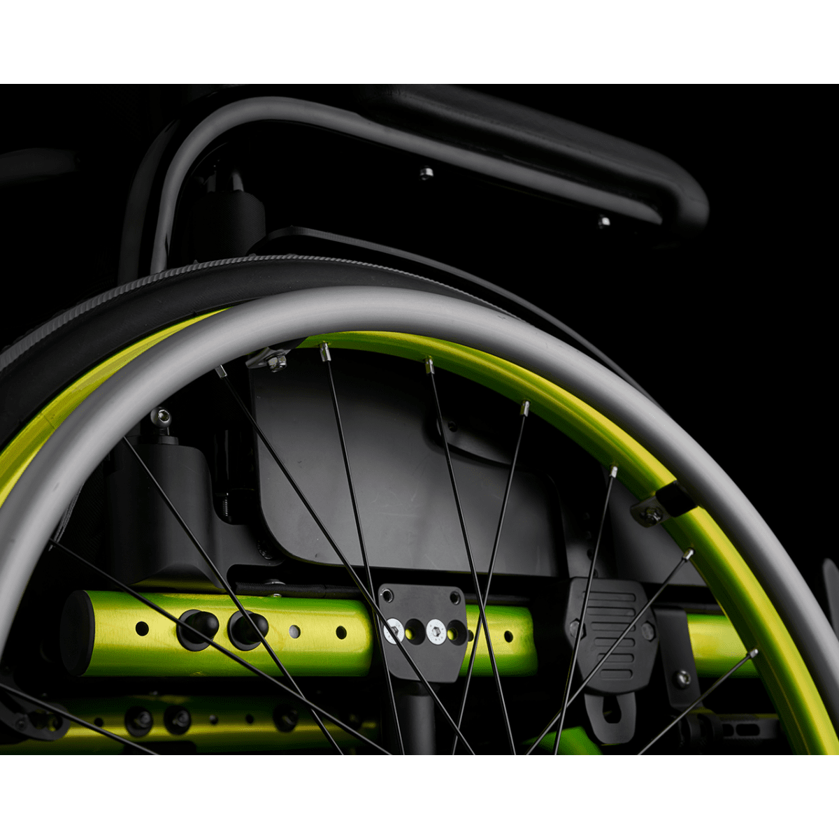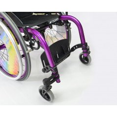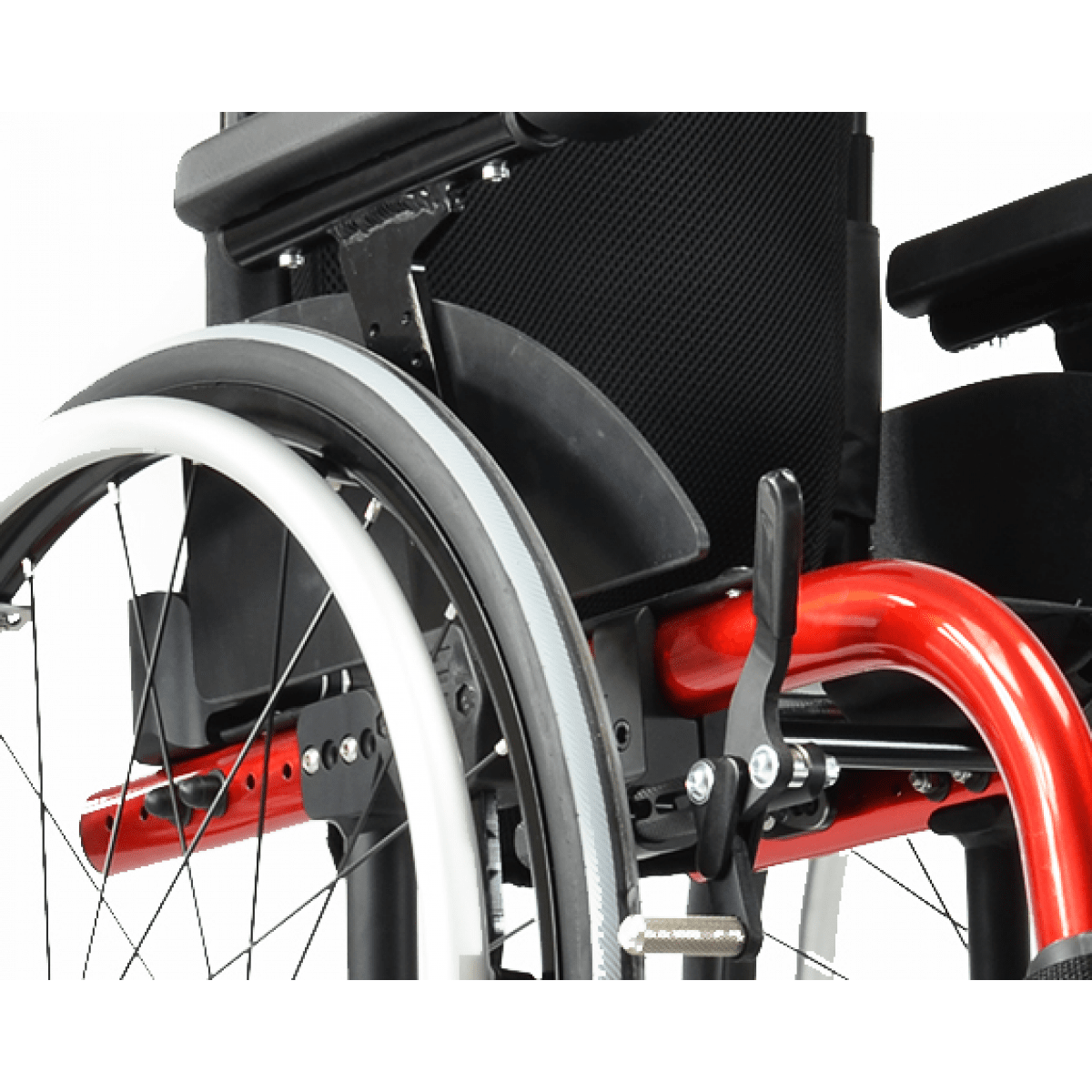 Одной из ключевых особенностей этой коляски является её складная спинка и быстросъёмные задние колёса. Такая конструкция значительно облегчает процесс хранения и транспортировки. Кроме того, настройка развала задних колёс расширяет функциональность коляски, позволяя изменять её скорость и маневренность в зависимости от потребностей ребёнка. Защитные крылья, выполненные в стильном дизайне, могут быть использованы также как подлокотники.