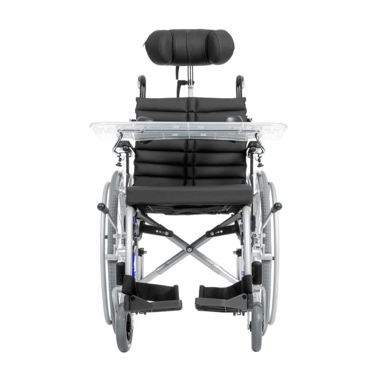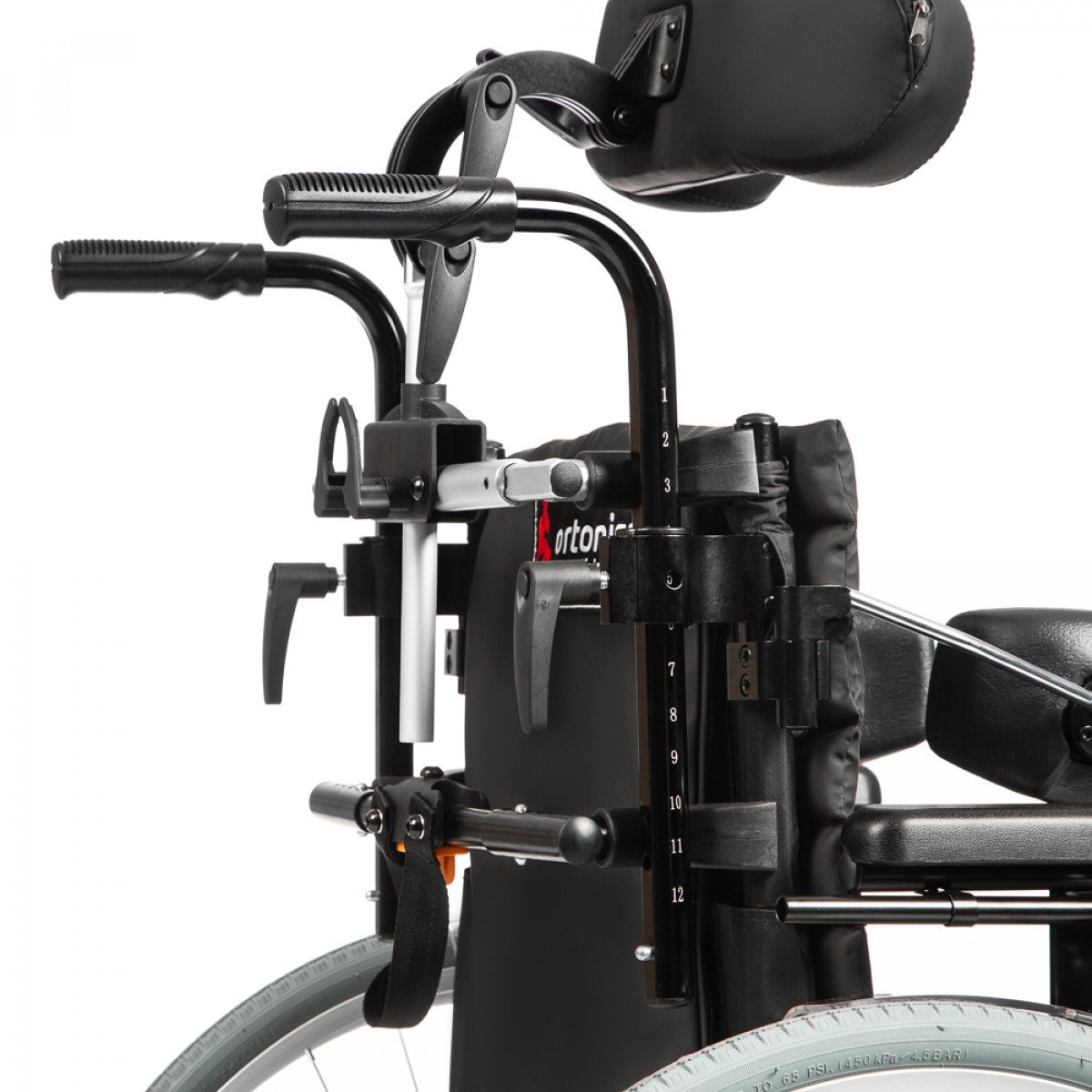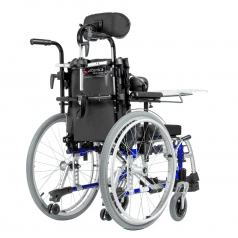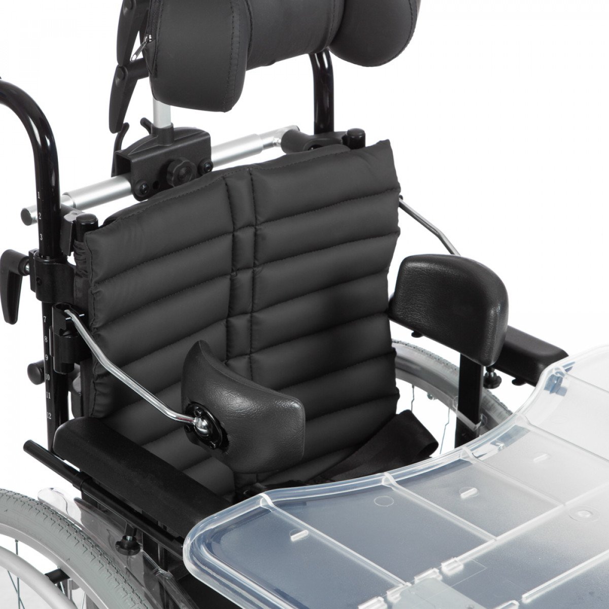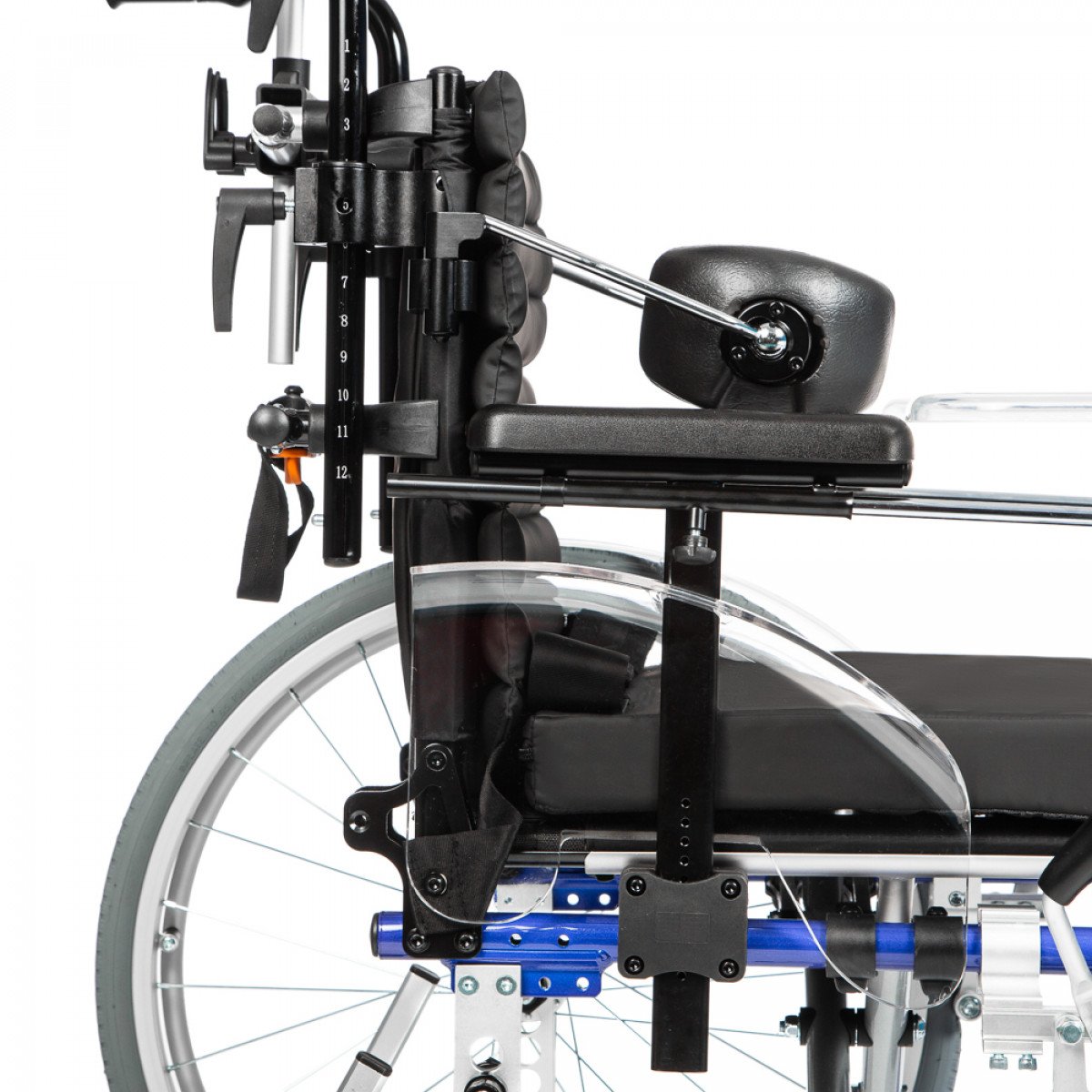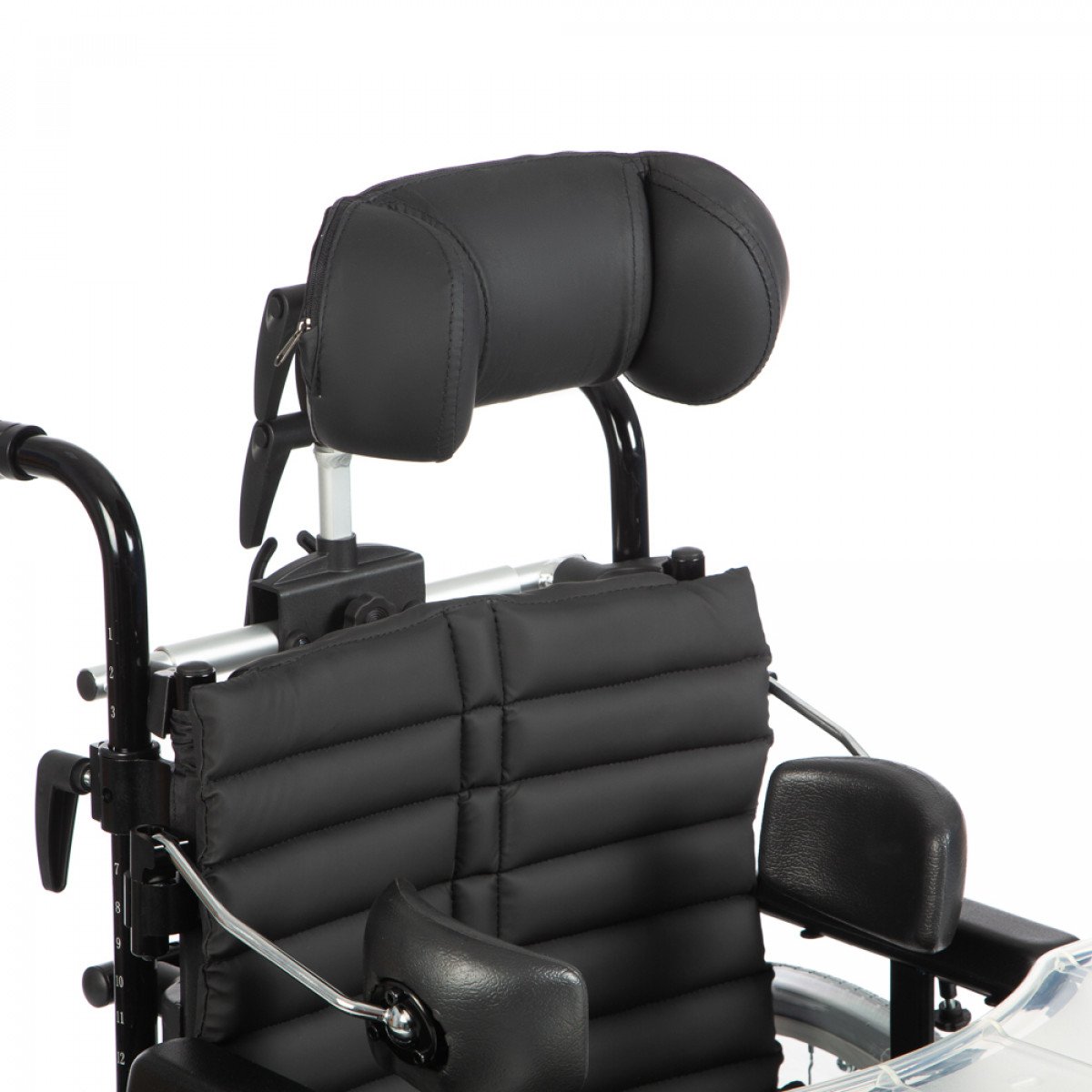 Кресло-коляска оснащена подголовником и боковыми опорами, которые можно настраивать по нескольким параметрам: вертикали, горизонтали, углу наклона и обхвату головы. Эти функции обеспечивает надёжную фиксацию и поддержку головы, а также помогают предотвратить деформации грудной клетки и позвоночника.