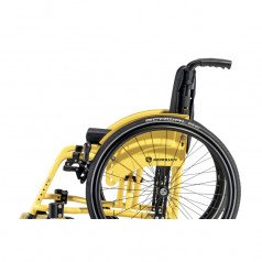 - Спинка, прямая, с регулируемой обивкой и обручем для перемещения коляски, регулируемым по высоте