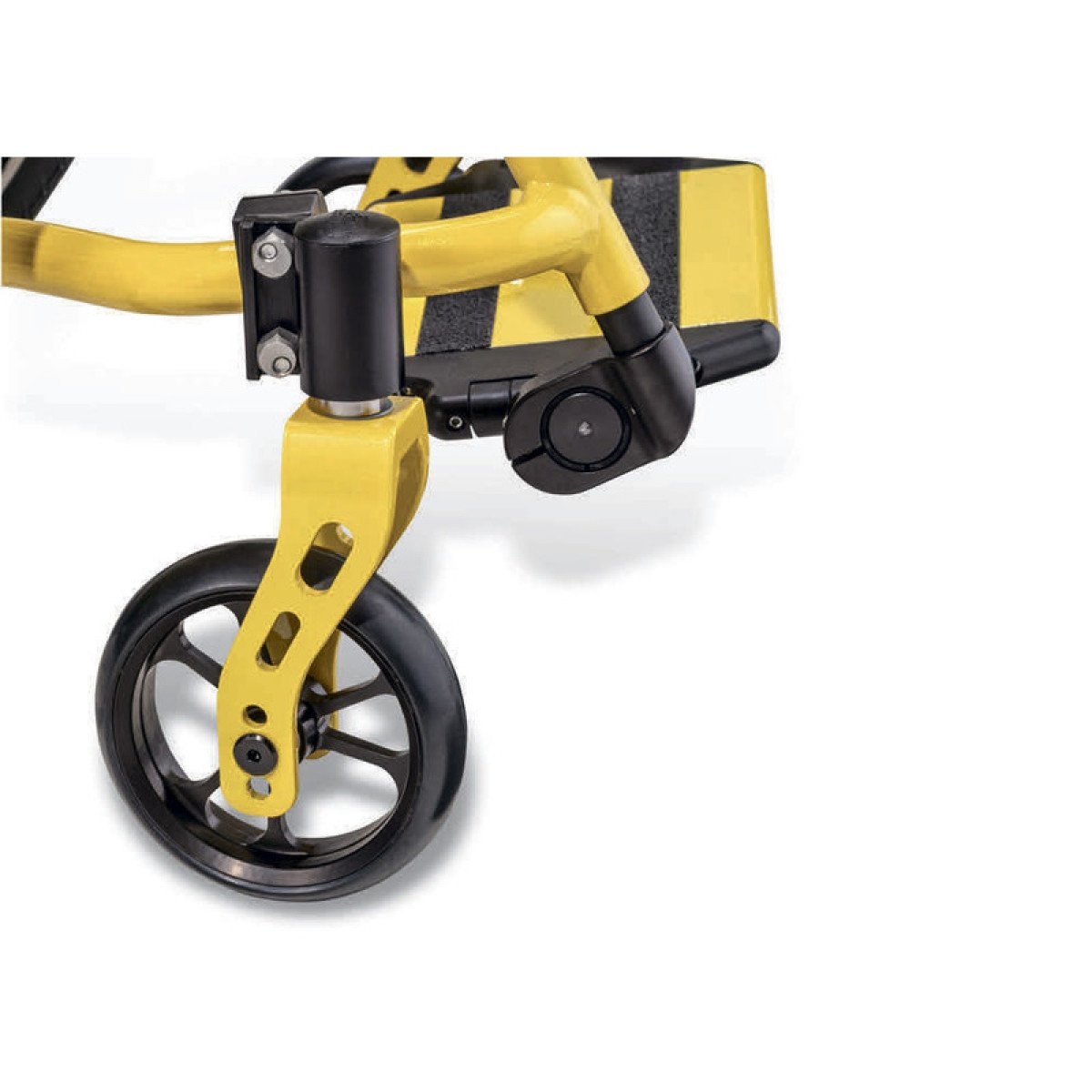 - Передние колёса мягкие, с алюминиевым ободком и чёрной шиной цельнолитой