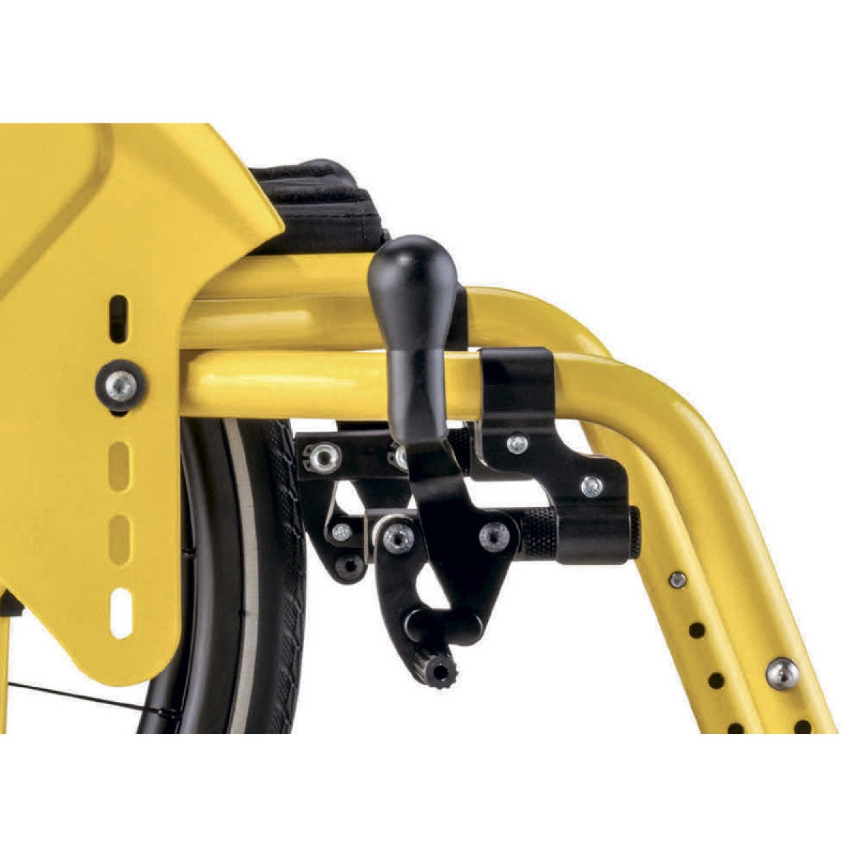- Спинка, прямая, с регулируемой обивкой и обручем для перемещения коляски, регулируемым по высоте