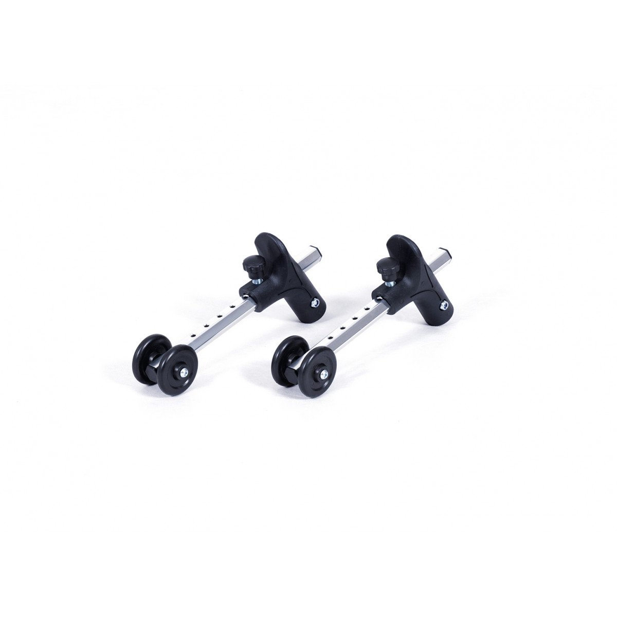 Подножки коляски также являются съёмными и регулируемыми по высоте. Их можно отводить в сторону для удобства пересаживания ребенка, а наличие колёсиков-бамперов защищает стены и мебель от повреждений при перемещении на коляске по дому.