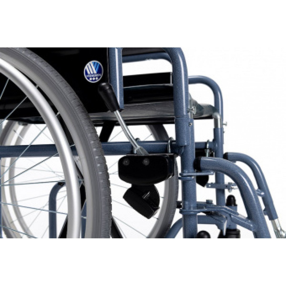 Коляска Vermeiren 708 Kids оборудована ручным стояночным тормозом, обеспечивающим надёжную фиксацию коляски на месте во время остановок. По желанию пользователей можно установить барабанный тормоз, который позволяет сопровождающему лицу легко контролировать движение коляски.