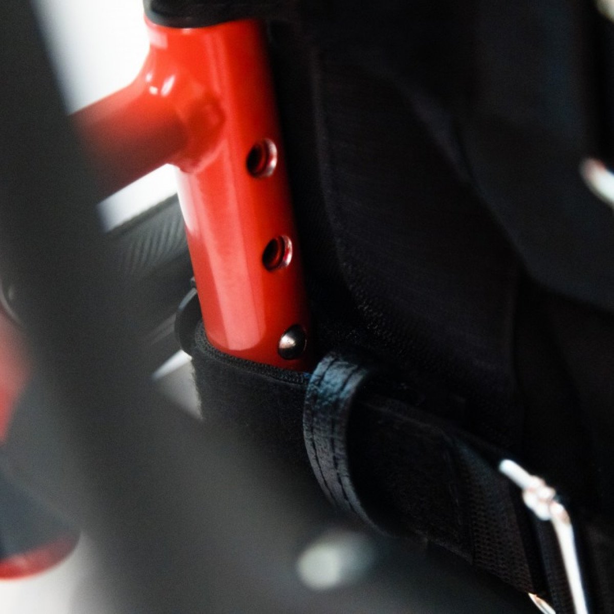Съёмный чехол изготовлен из специального супер-прочного дышащего материала Cordura. Активная коляска для детей оснащена различными регулировками и дополнительными аксессуарами, такими как защита на задние колёса, что бы пальцы рук не попали в спицы, ремень безопасности и т.д. Их наличие позволяет максимально удобно настроить изделие под ребёнка, обеспечивая ему чувство комфорта и уверенности в себе.