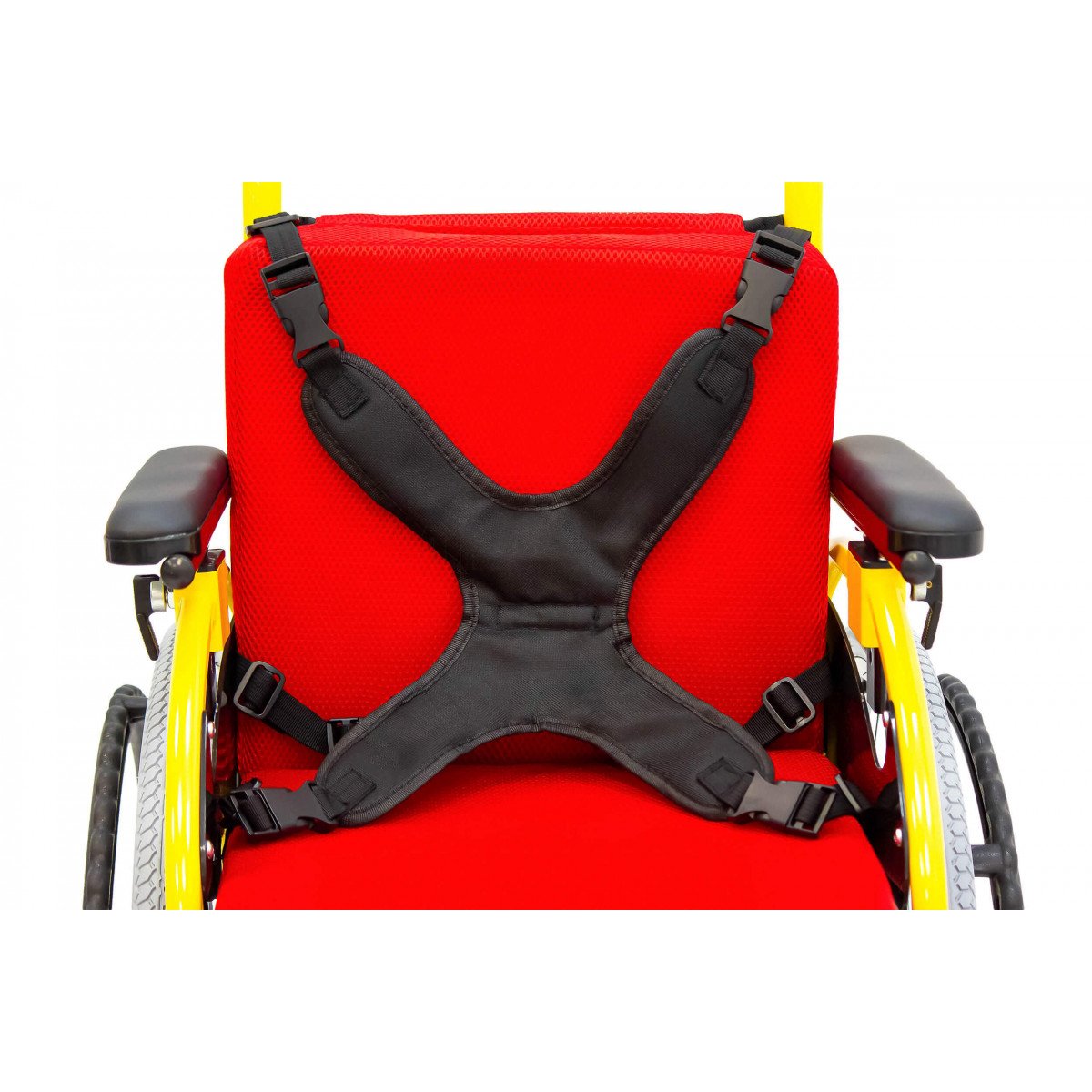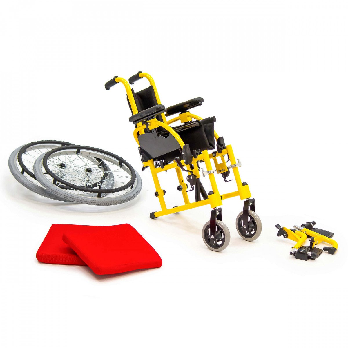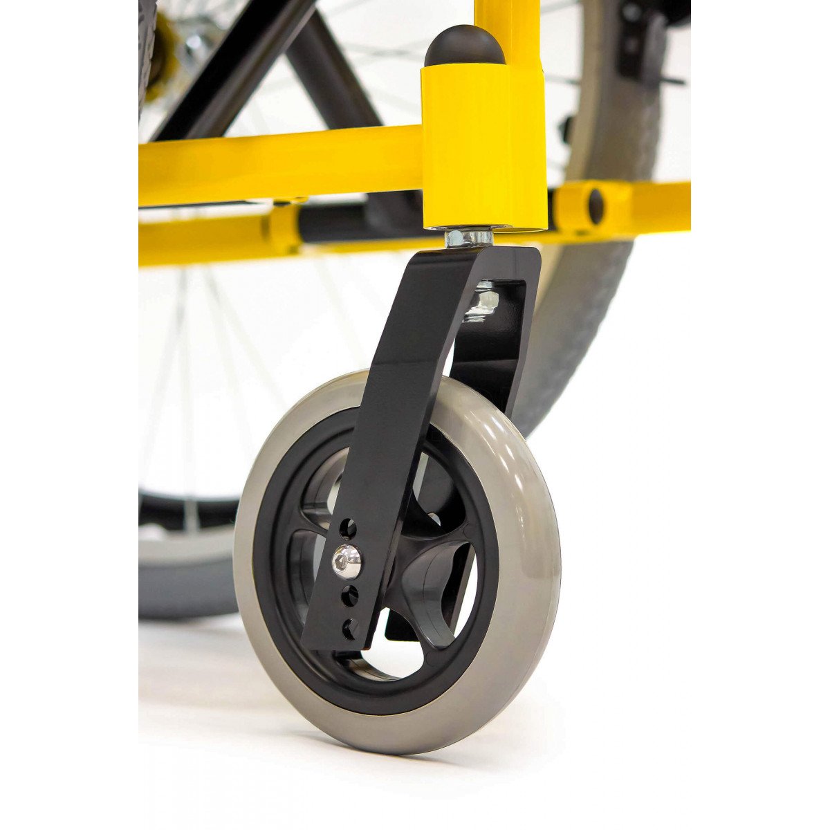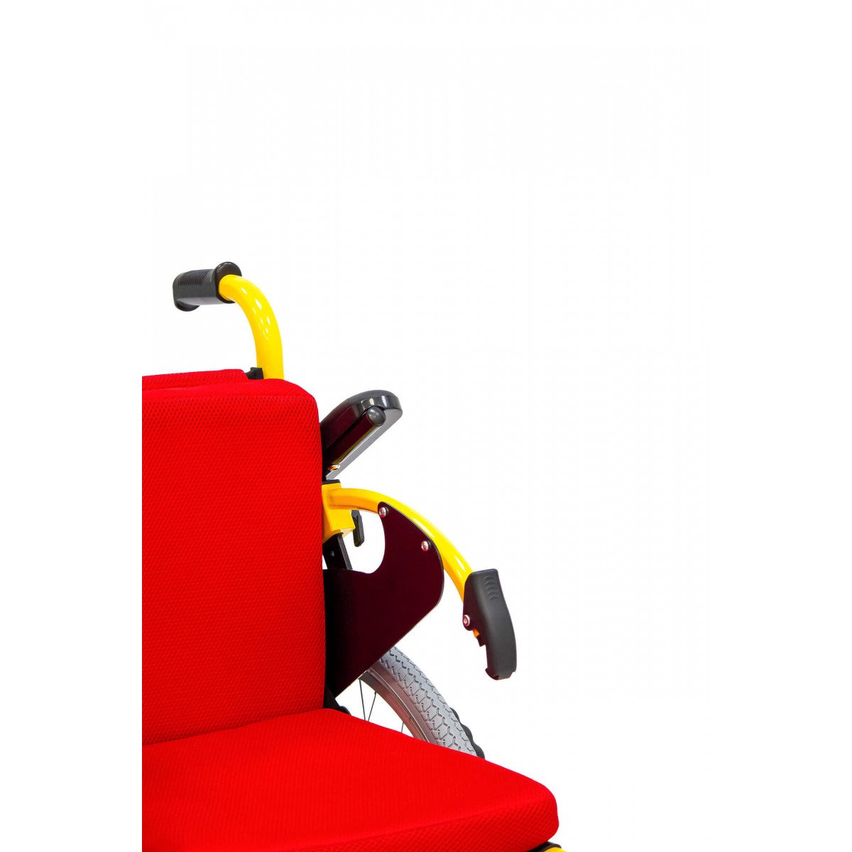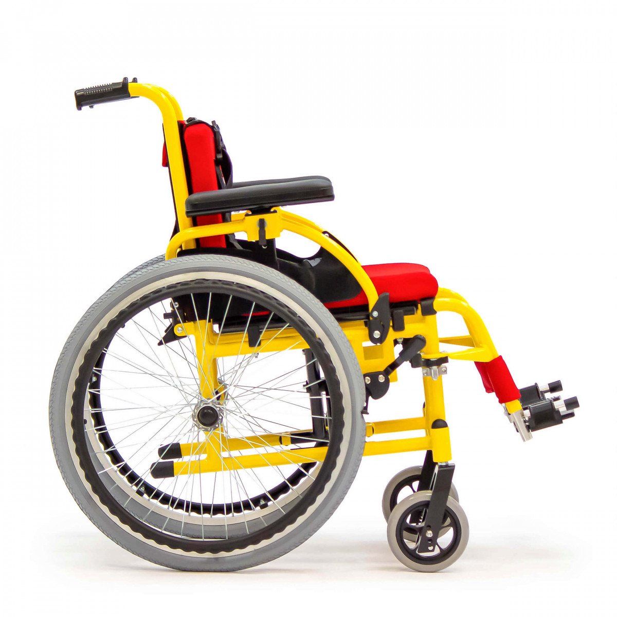 Пневматические задние колёса обеспечивают мягкий ход, а передние литые колёса не требуют обслуживания и добавляют устойчивости. Для фиксации на месте предусмотрены боковые стояночные тормоза. На спинке расположен небольшой карман — в нём удобно хранить необходимые мелочи.