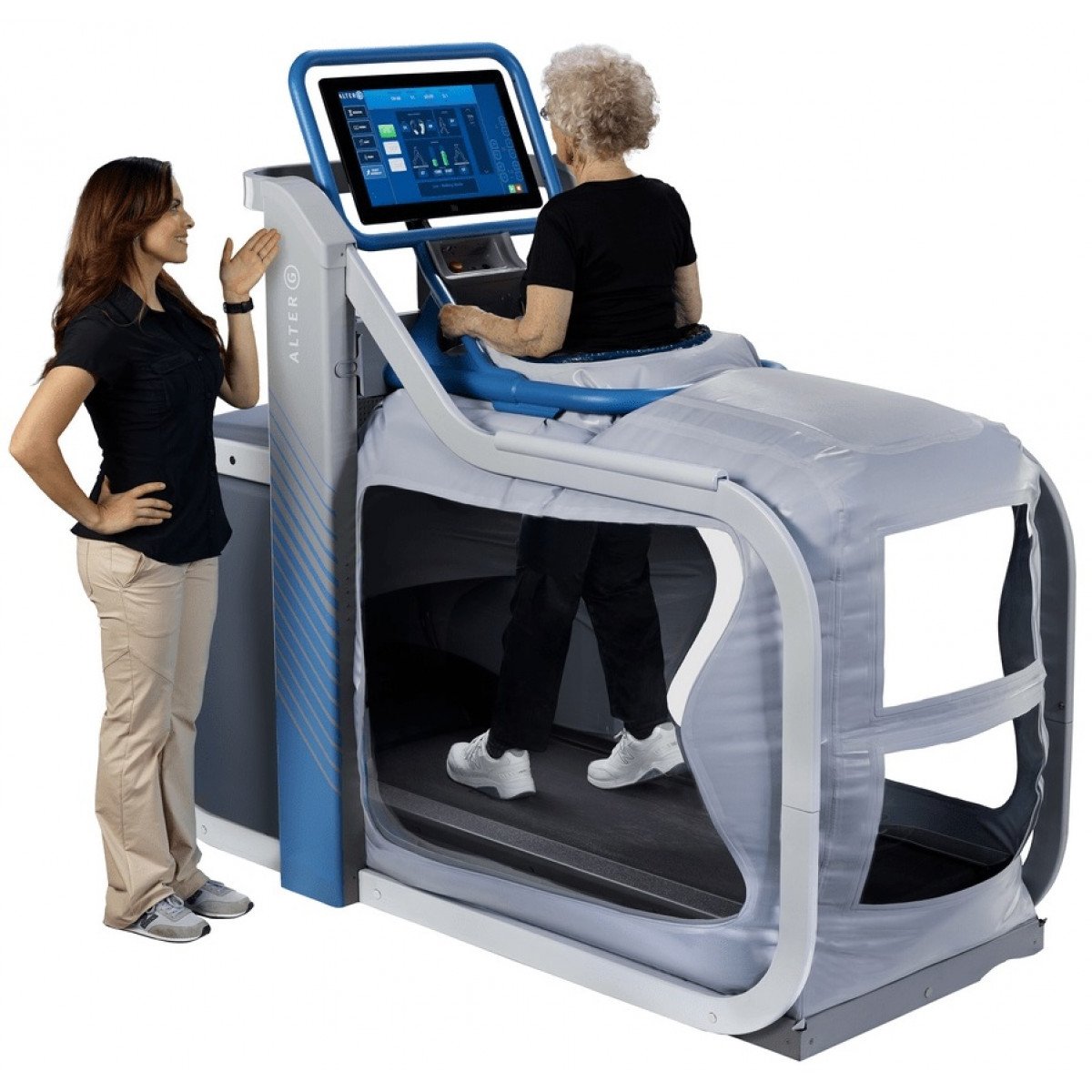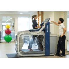 При работе с AlterG пациент входит в специальную камеру, а врач-реабилитолог задает скорость движения беговой дорожки, наклон и давление воздуха, которое возрастает постепенно, что приводит к ощущению, которое пользователи описывают как «бег по воздуху» или «ходьба по луне». Нагрузка на ноги может уменьшаться до 80% с шагом в 1%. Уменьшение массы тела снижает воздействие на суставы и мышцы, что обеспечивает более равномерное и, главное, контролируемое восстановление после травм или операций, а также для улучшения подготовки спортсменов.
