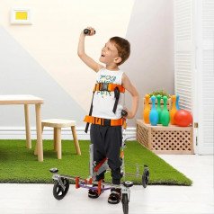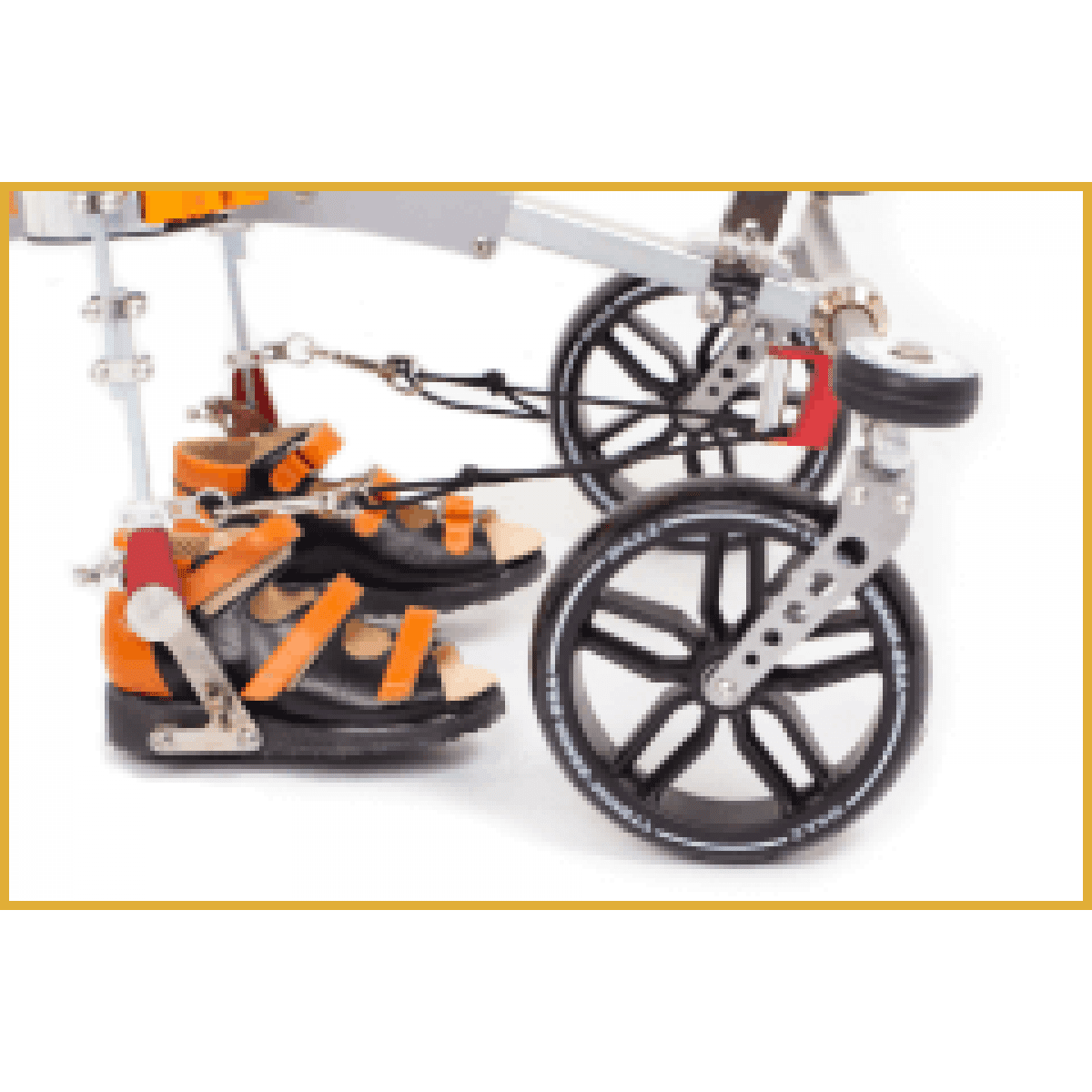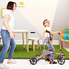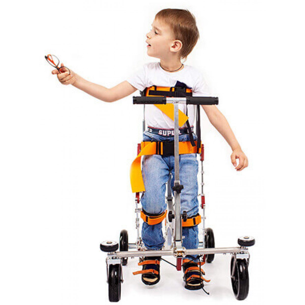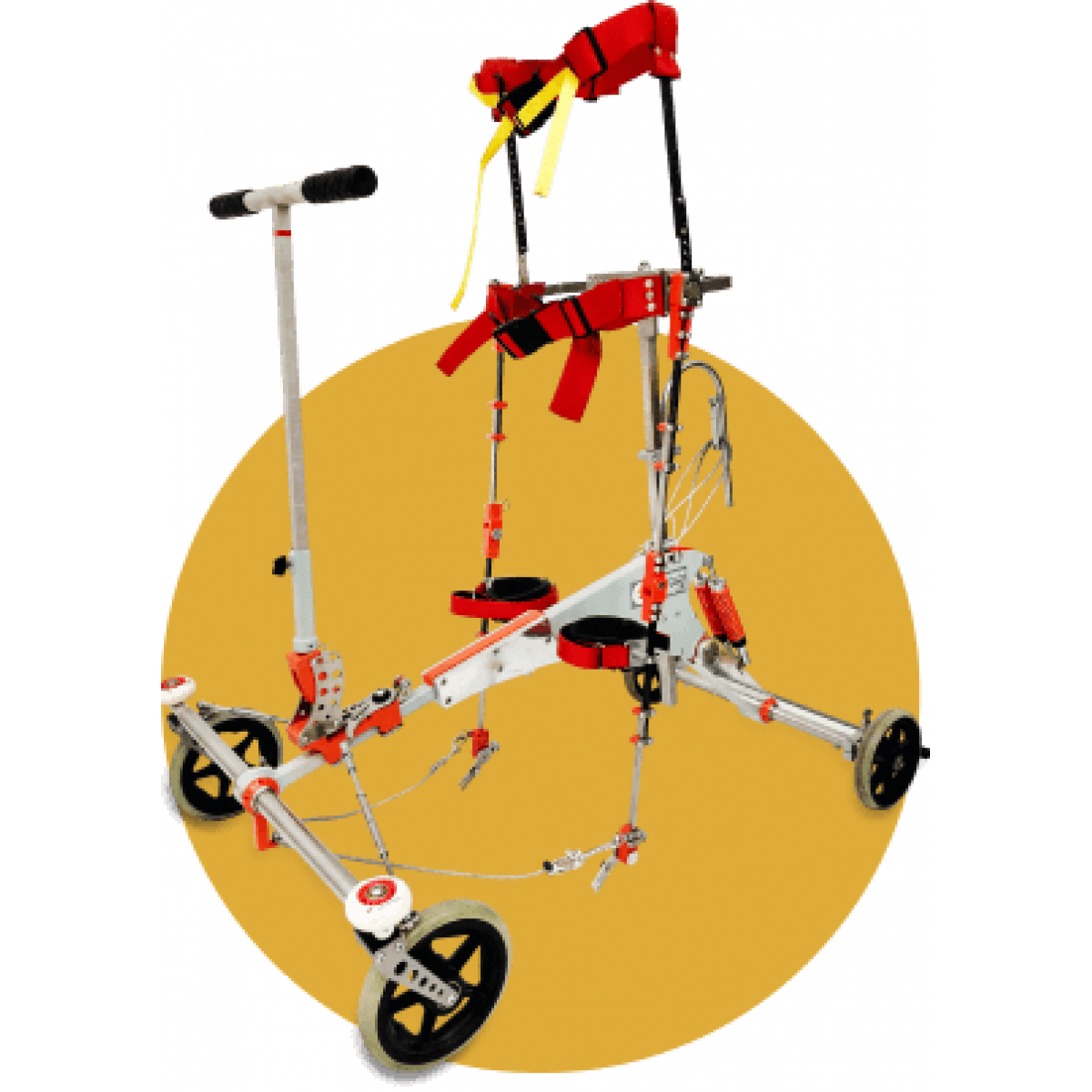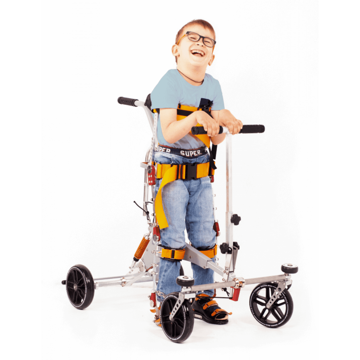 ЭкзоБот – комплексное медицинское устройство для пользователей с проблемой контроля баланса туловища и патологического паттерна шага. Тренажёр выполняет не только функцию вертикализатора, но и обладает функцией ходунков-ролаторов с формированием правильного паттерна шага, а именно, ходьбу с пятки. Устройство позволяет удерживать вертикальное положение тела и тренировать самостоятельную ходьбу. Экзобот состоит из двух частей: динамической опоры на колёсах и экзо-ортеза, который надёжно фиксирует суставы нижних конечностей и грудную клетку.