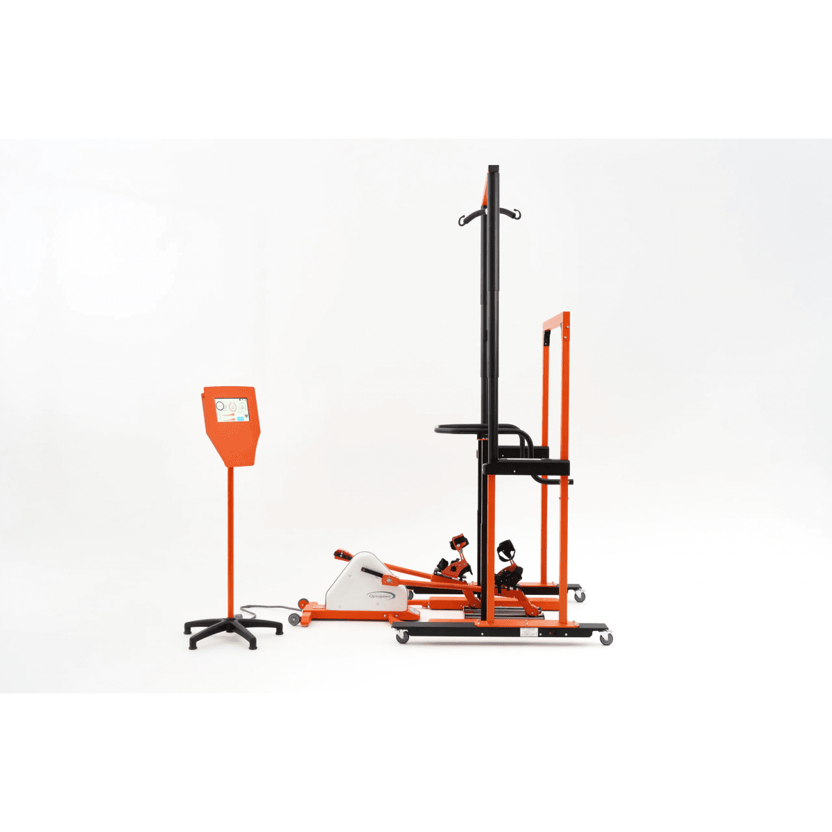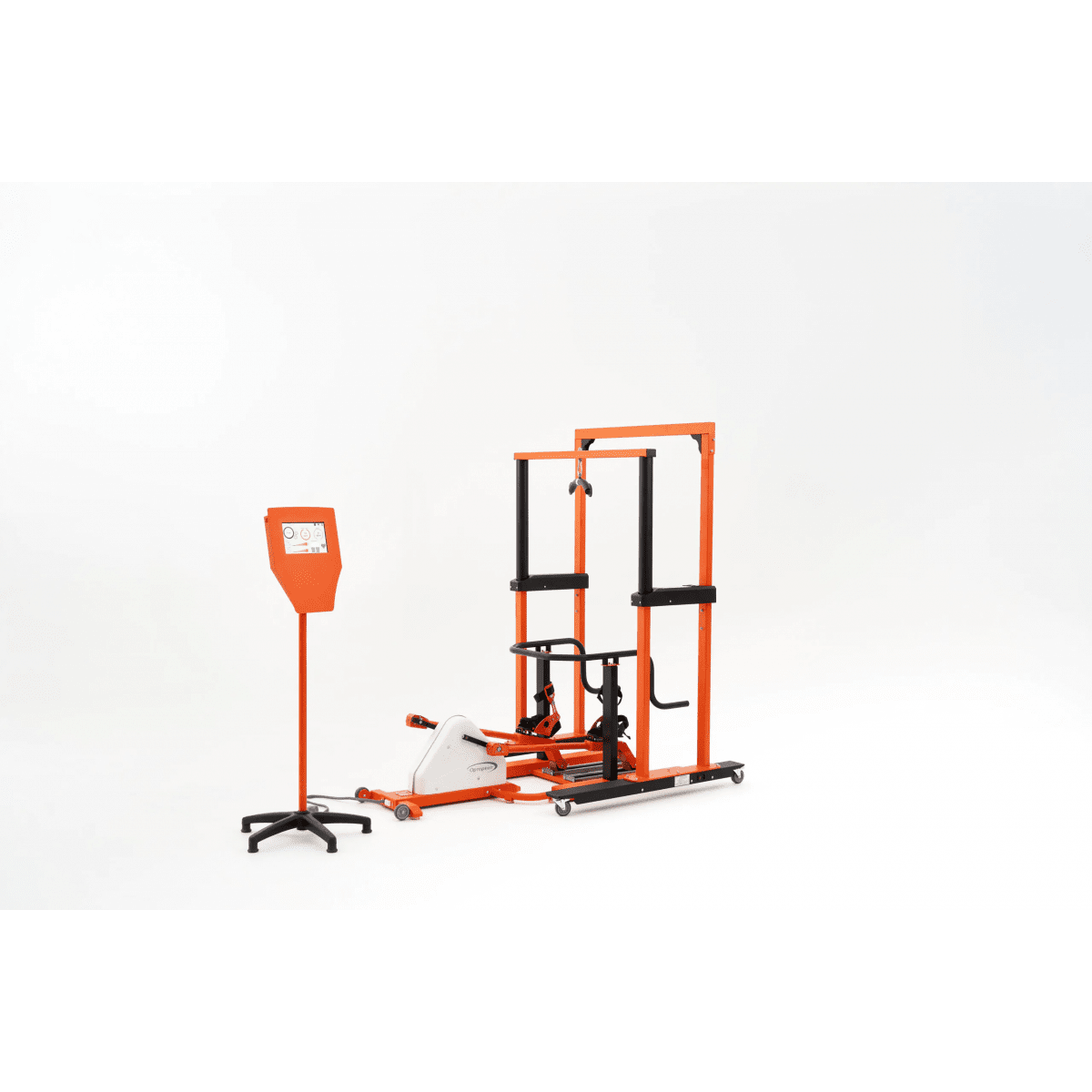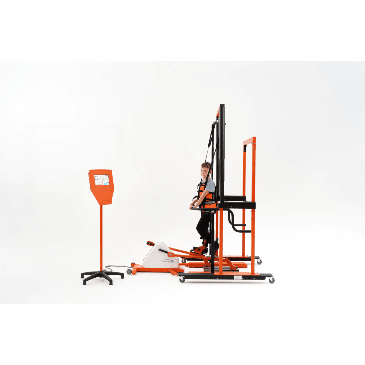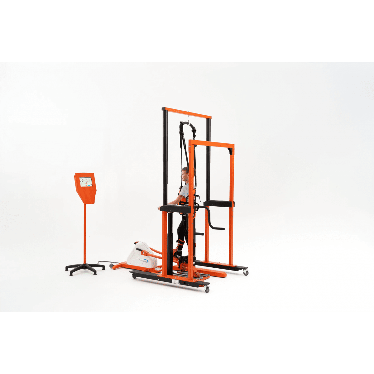 Вся информация о параметрах и результатах тренировки отображается на стойке с экраном 25 см. При желании система может быть укомплектована дополнительным широкоформатным экраном, который будет дублировать информацию со стойки управления. Для перемещения ребёнка внутри медицинского учреждения или по дому, помещение может быть оборудовано рельсовыми система подъёма и перемещения.