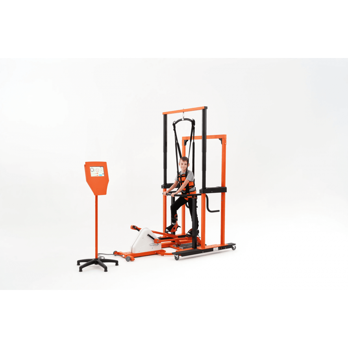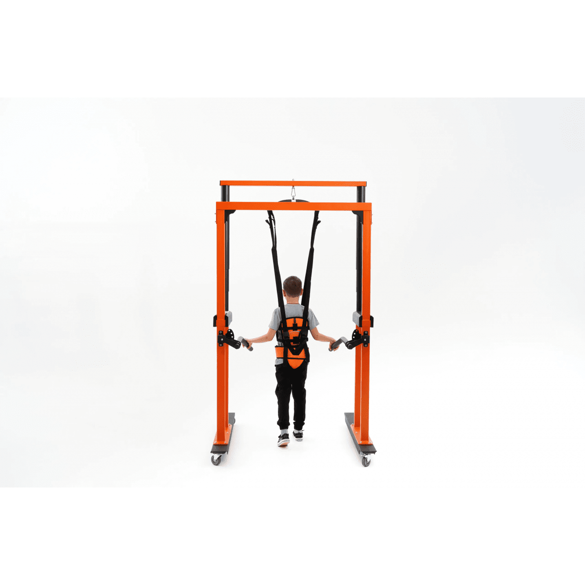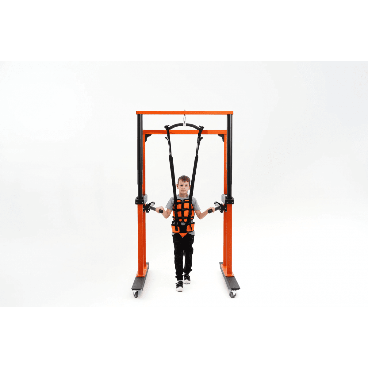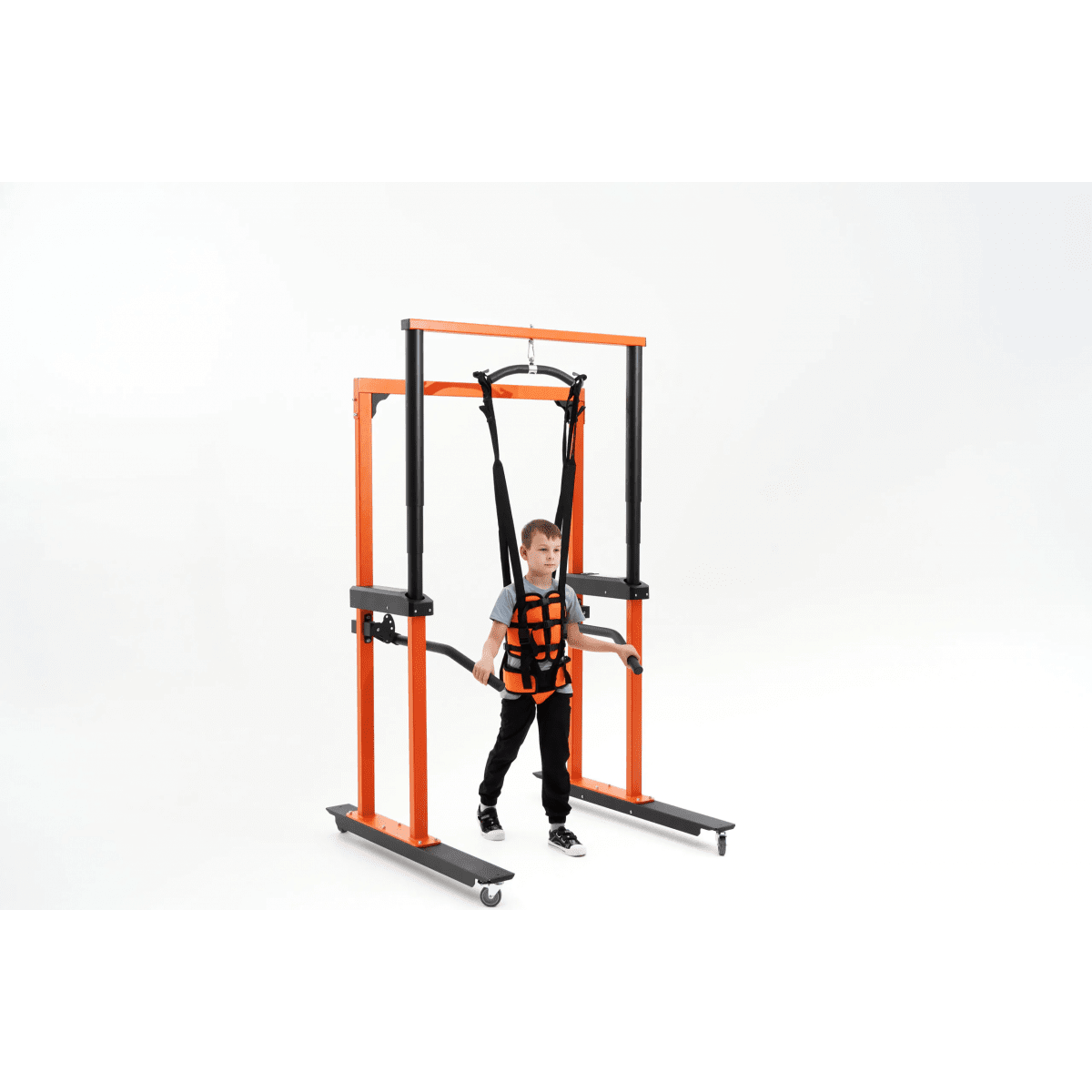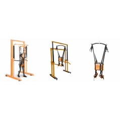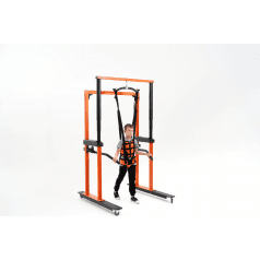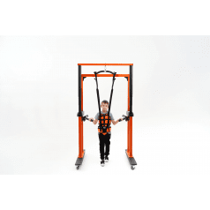 Универсальная подвесная система применяется для того, чтобы помочь ребёнку принять сидячее положение, разгрузить вес во время ходьбы, а также обеспечить безопасность во время тренировок в вертикальном положении. Подъёмный механизм, работающий от сети, плавно поднимает ребёнка и помогает восстанавливать навыки ходьбы после серьёзных травм и операций на суставах и позвоночнике, а также после неврологических заболеваний.