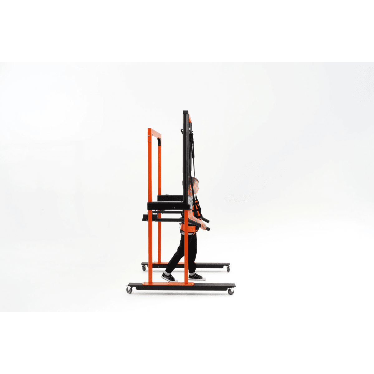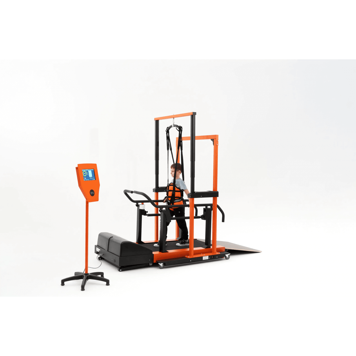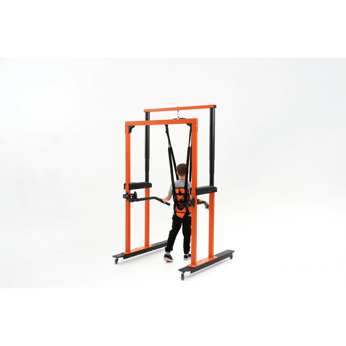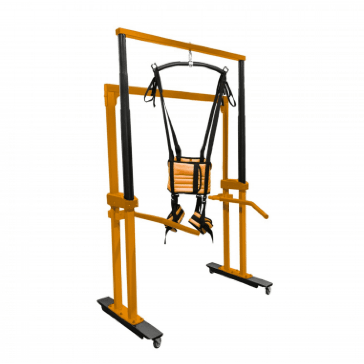 Универсальная подвесная система применяется для того, чтобы помочь ребёнку принять сидячее положение, разгрузить вес во время ходьбы, а также обеспечить безопасность во время тренировок в вертикальном положении. Подъёмный механизм, работающий от сети, плавно поднимает ребёнка и помогает восстанавливать навыки ходьбы после серьёзных травм и операций на суставах и позвоночнике, а также после неврологических заболеваний.