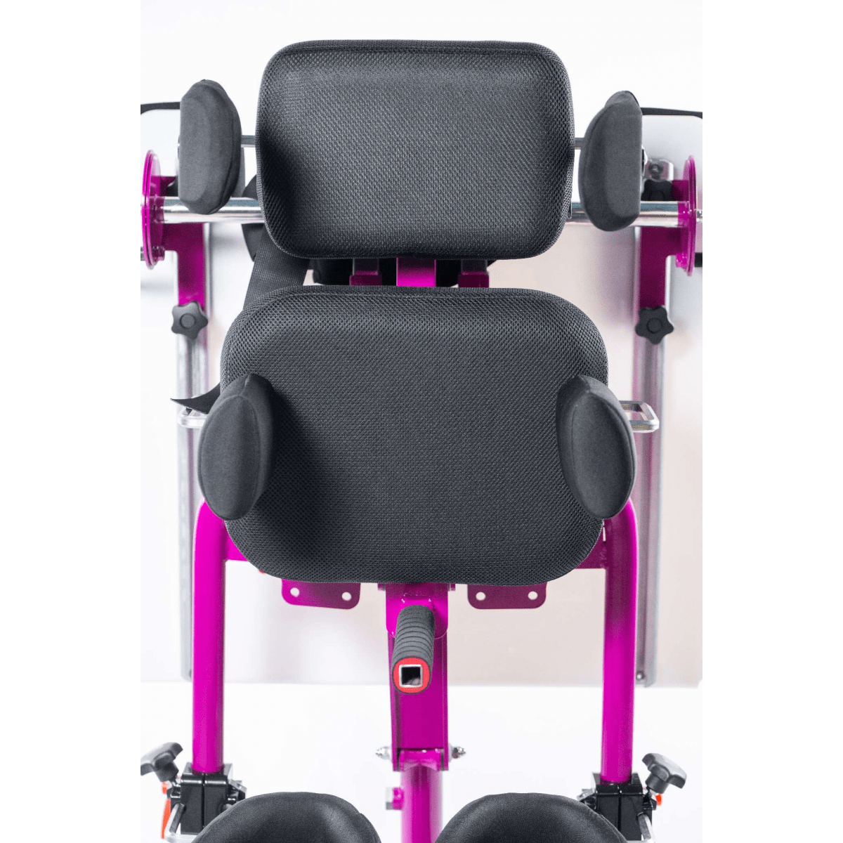 Особенностью вертикализатора является система изолированного разведения ног, позволяющая установить физиологически правильное положение нижних конечностей до 30 градусов. Это делает реабилитацию более эффективной и комфортной. Устройство подходит для регулярного использования и помогает постепенно улучшать двигательные возможности.