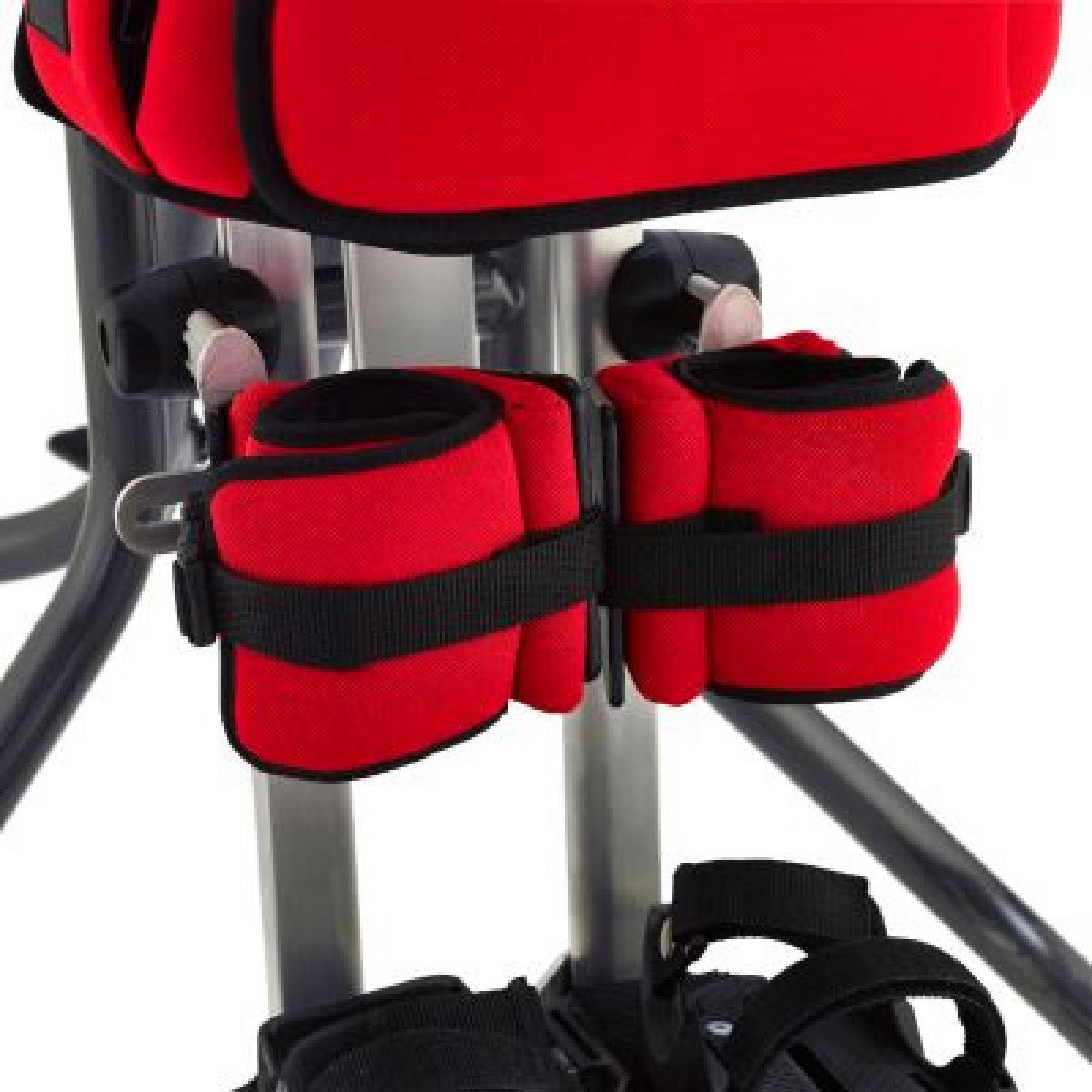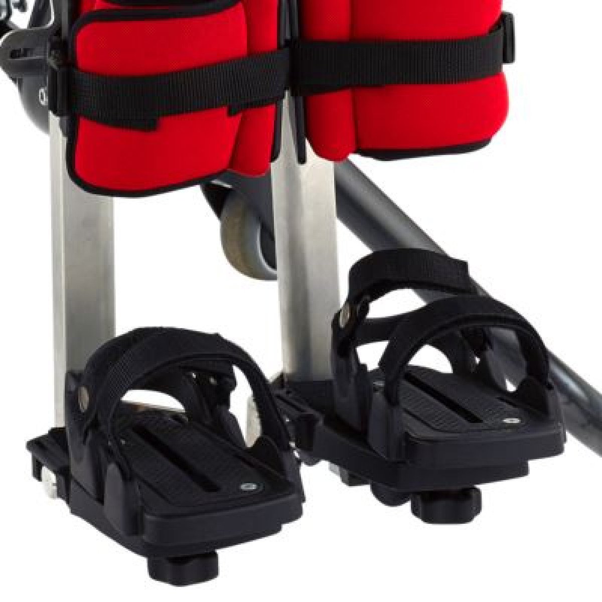 - Комплект 3 (цвет виниловый красный): шасси на колёсах, подголовник с боковыми поддержками, стол, опоры для стоп, сандалии маленькие, фиксаторы грудного отдела, туловища, коленей