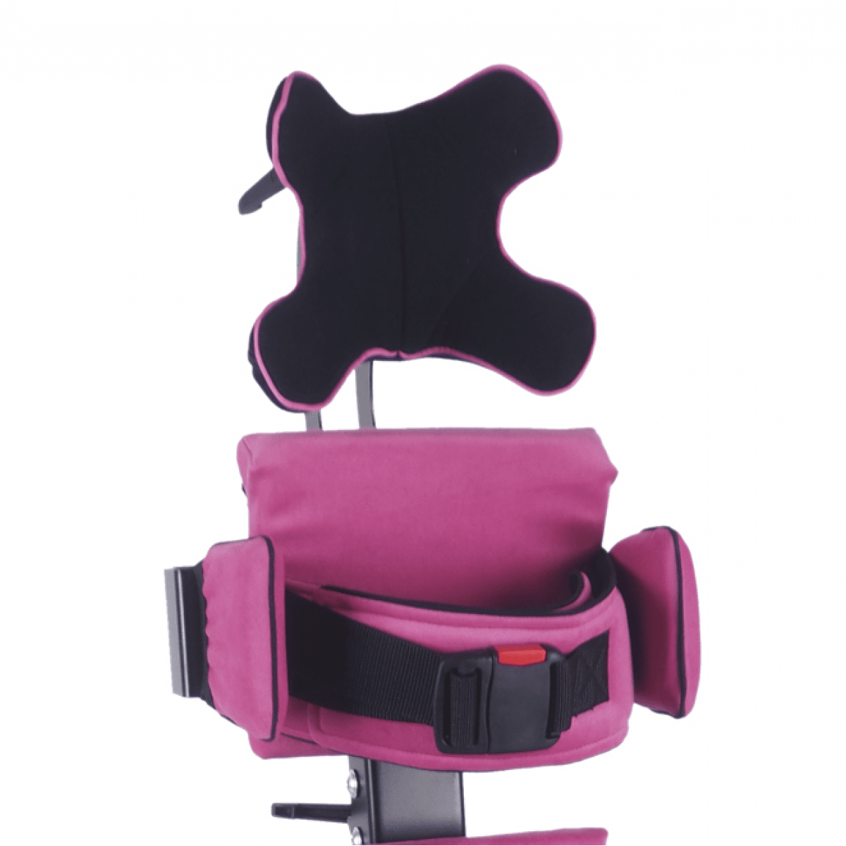 Голову поддерживает контурный подголовник, который крепко удерживает голову. Подголовник изготовлен из гибкого материала, что позволяет ему подстраиваться под форму головы ребёнка. Использование подголовника возможно как при передней, так и при задней вертикализации.