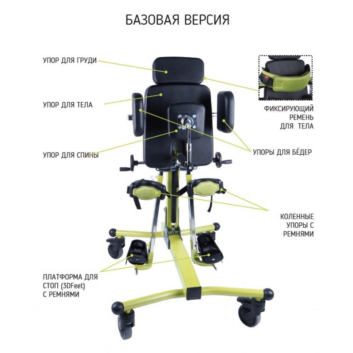 Вертикализатор LIWCare Coco доступен в трёх различных размерах, что позволяет учитывать рост и особенности каждого отдельного пациента.