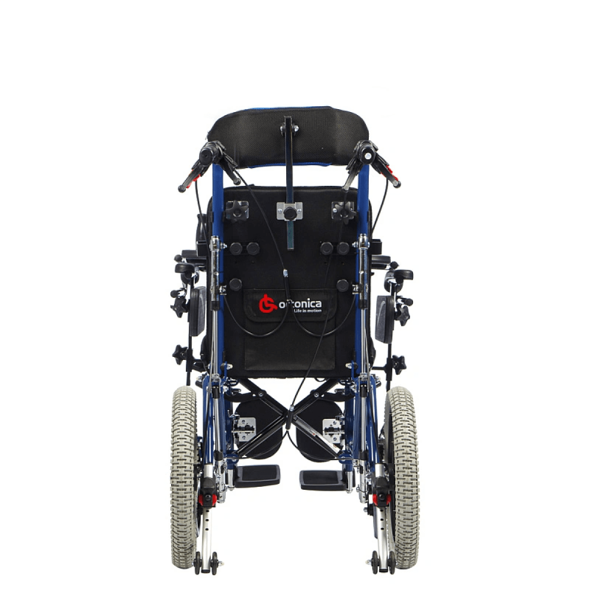 Кресло-коляска для инвалидов Ortonica Olvia 300 (Ортоника Олвия 300), управляемая сопровождающим лицом, предназначена для передвижения детей с ограниченными возможностями. Для удобства сопровождающего лица ручки коляски оснащены рычагами для плавной регулировки угла наклона как спинки, так и сиденья. Также на ручках предусмотрена система торможения. Кресло-коляска дополнительно оборудована необходимыми поддержками и фиксаторами, которые помогают ребёнку оставаться в безопасном и удобном положении во время передвижения.
