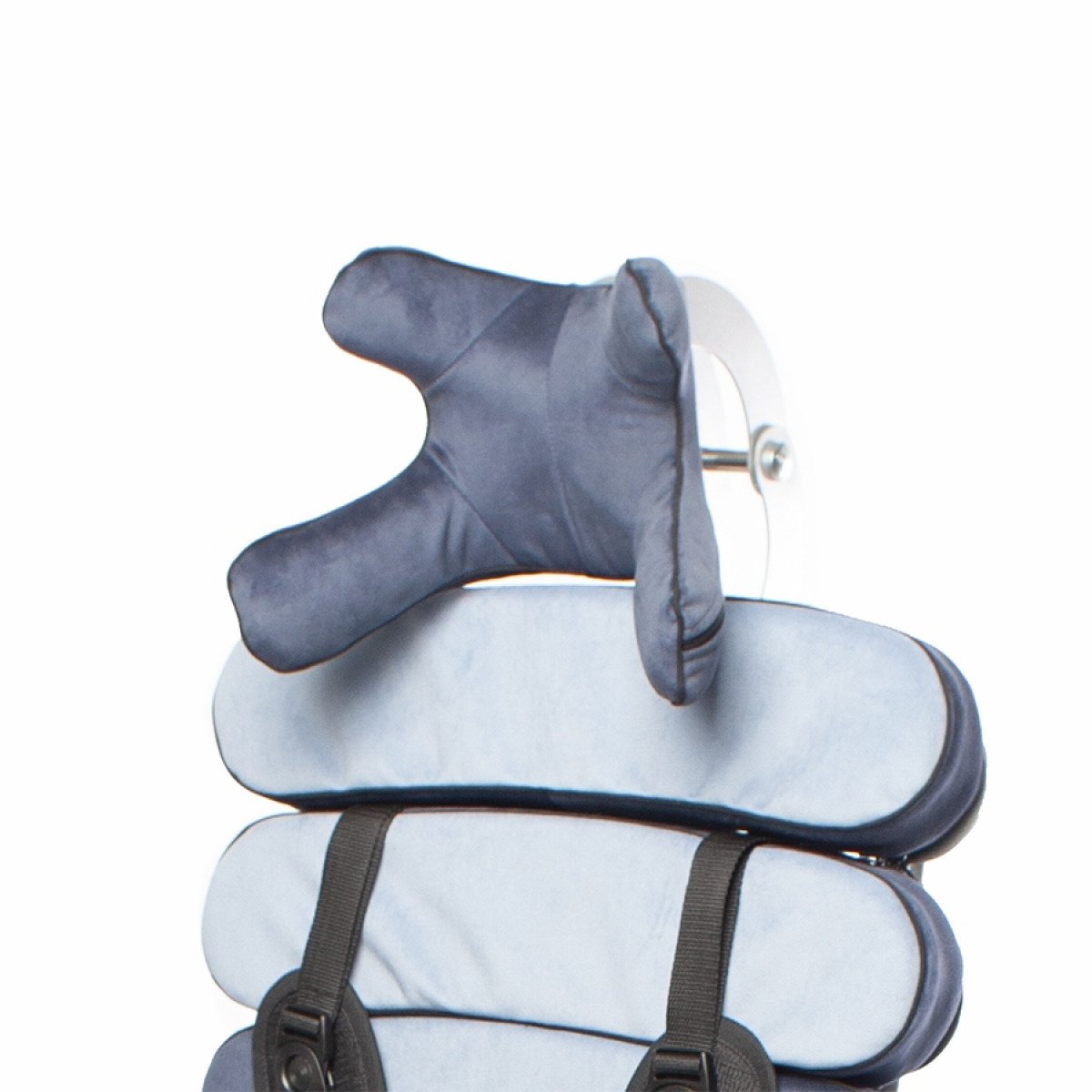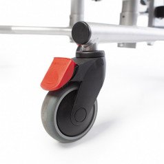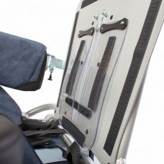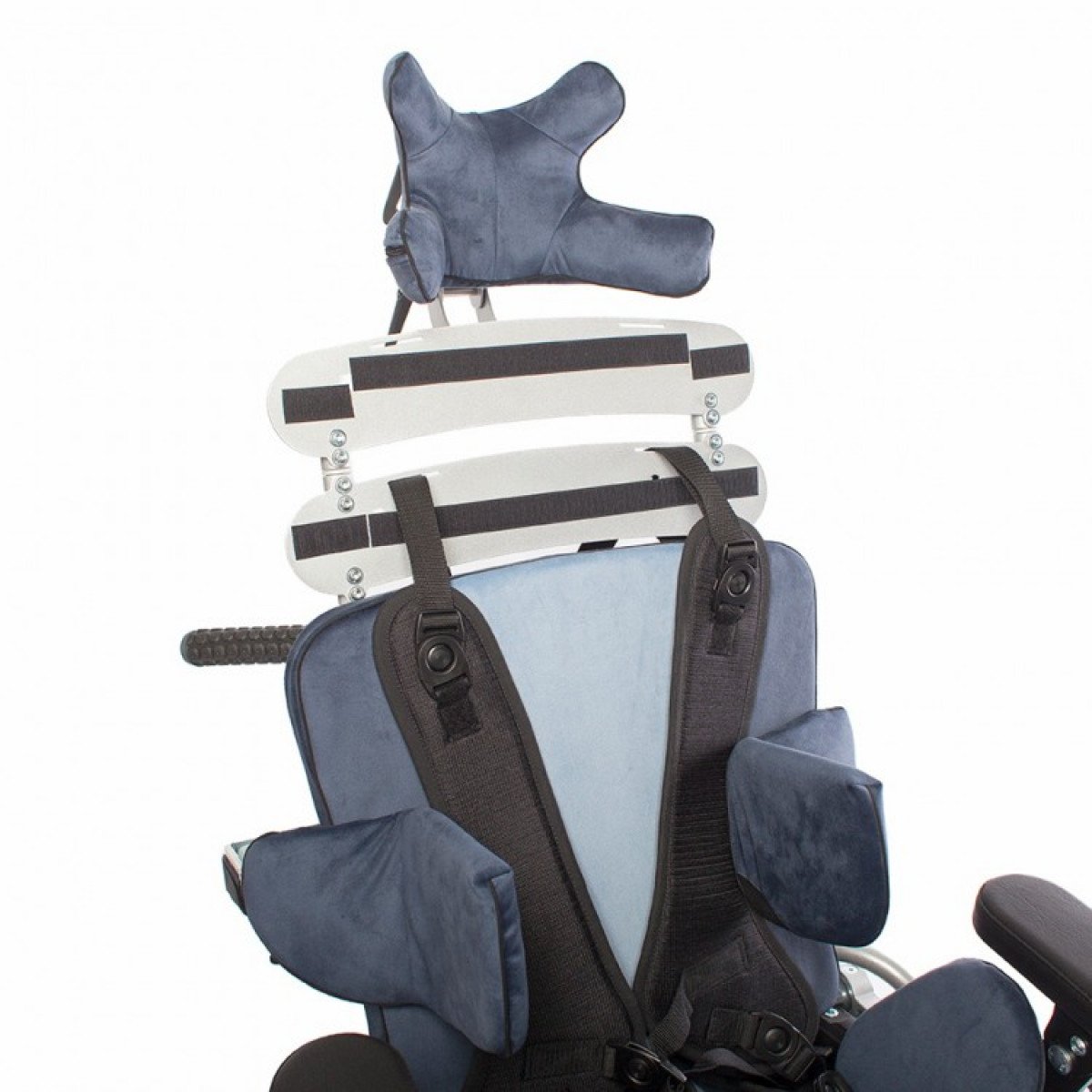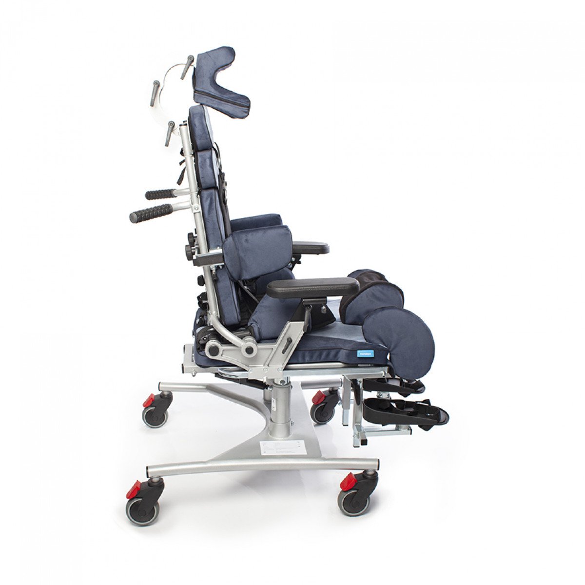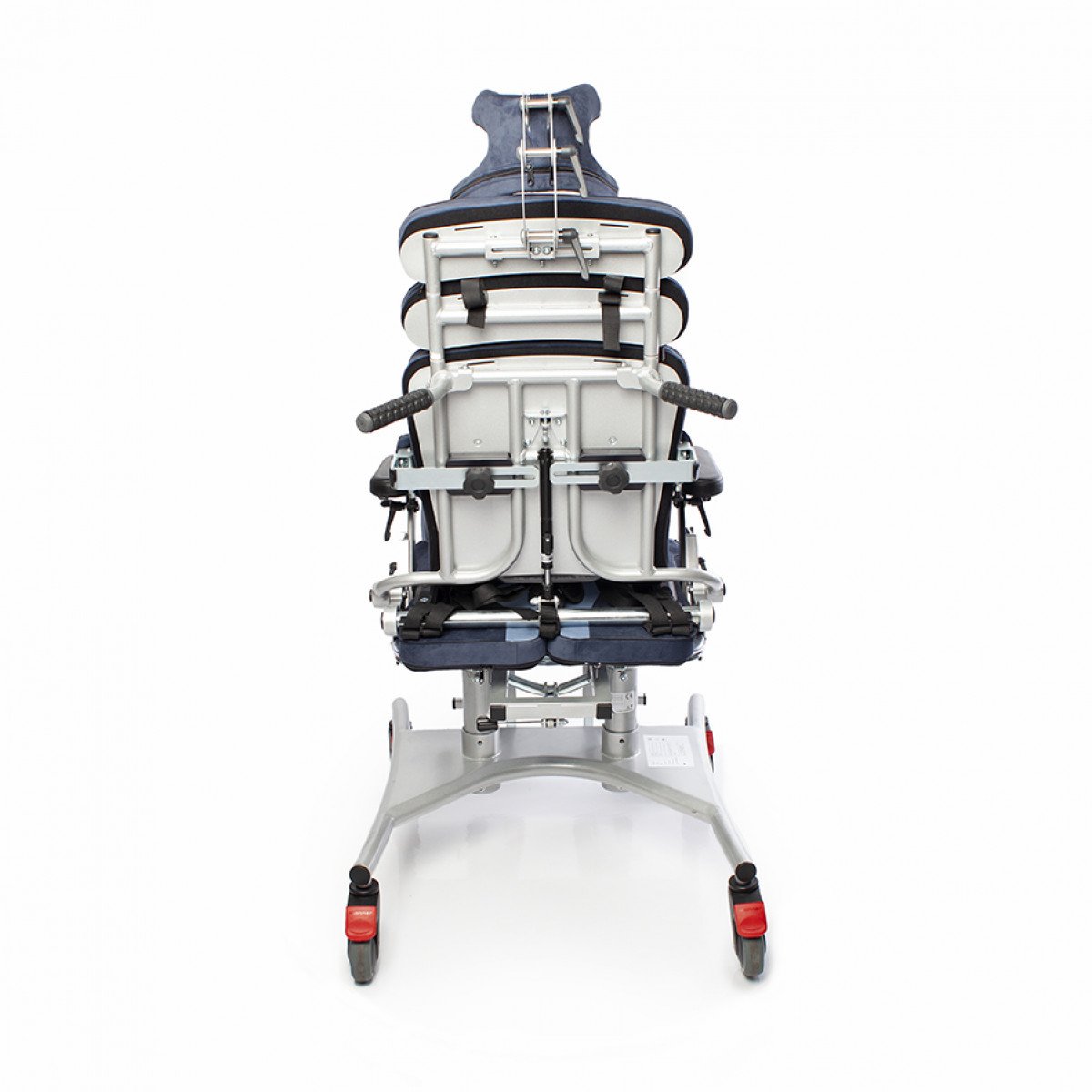 Кресло оснащено независимыми и регулируемыми упорами для тазобедренного сустава, которые можно настроить по ширине и углу наклона, что позволяет выбрать симметричную или асимметричную регулировку в зависимости от индивидуальных потребностей пользователя. Также предусмотрены тазовые ремни для дополнительной фиксации.