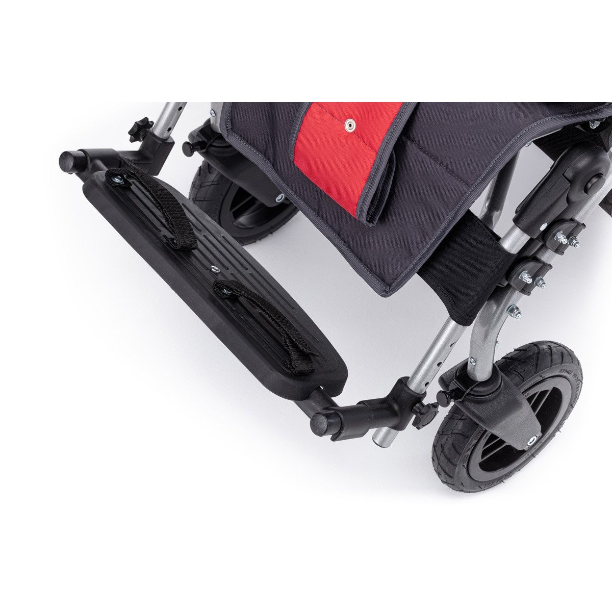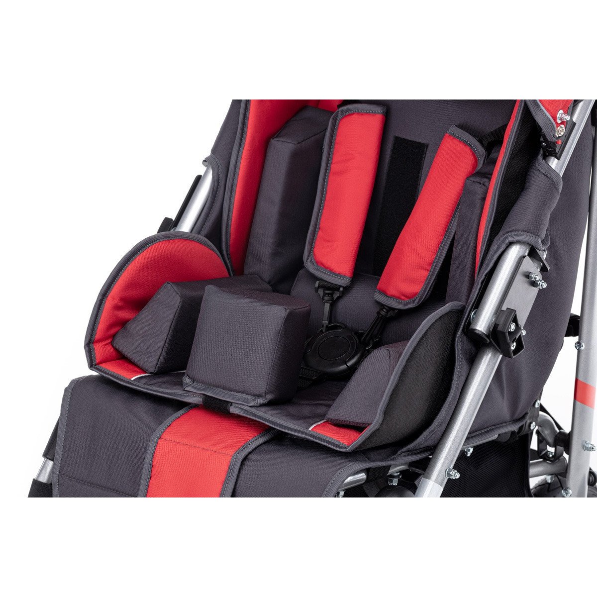 Коляска хорошо маневрирует и легко управляется благодаря поворотным колёсам. Спинка плавно регулируется, позволяя выбрать комфортное положение — от активного сидения до отдыха. Подножка подстраивается под рост ребёнка, а абдуктор помогает удерживать правильное положение таза. Все элементы поддержки продуманы так, чтобы снизить нагрузку и обеспечить стабильную посадку.