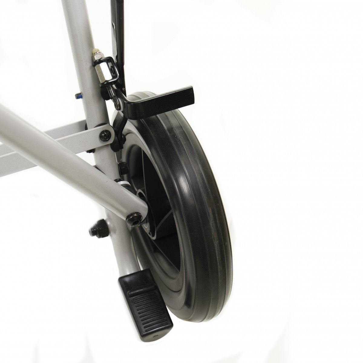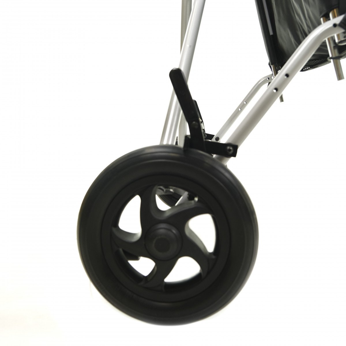 Угол наклона сиденья может быть легко регулирован от 15 до 22 градусов, а спинка колеса – от 85 до 95 градусов. Оснащена передними и задними колёсами (20 и 25 см.), которые оборудованы специальным креплением для удобства перемещения. Сиденье имеет регулируемую глубину, что обеспечивает дополнительное пространство при необходимости.