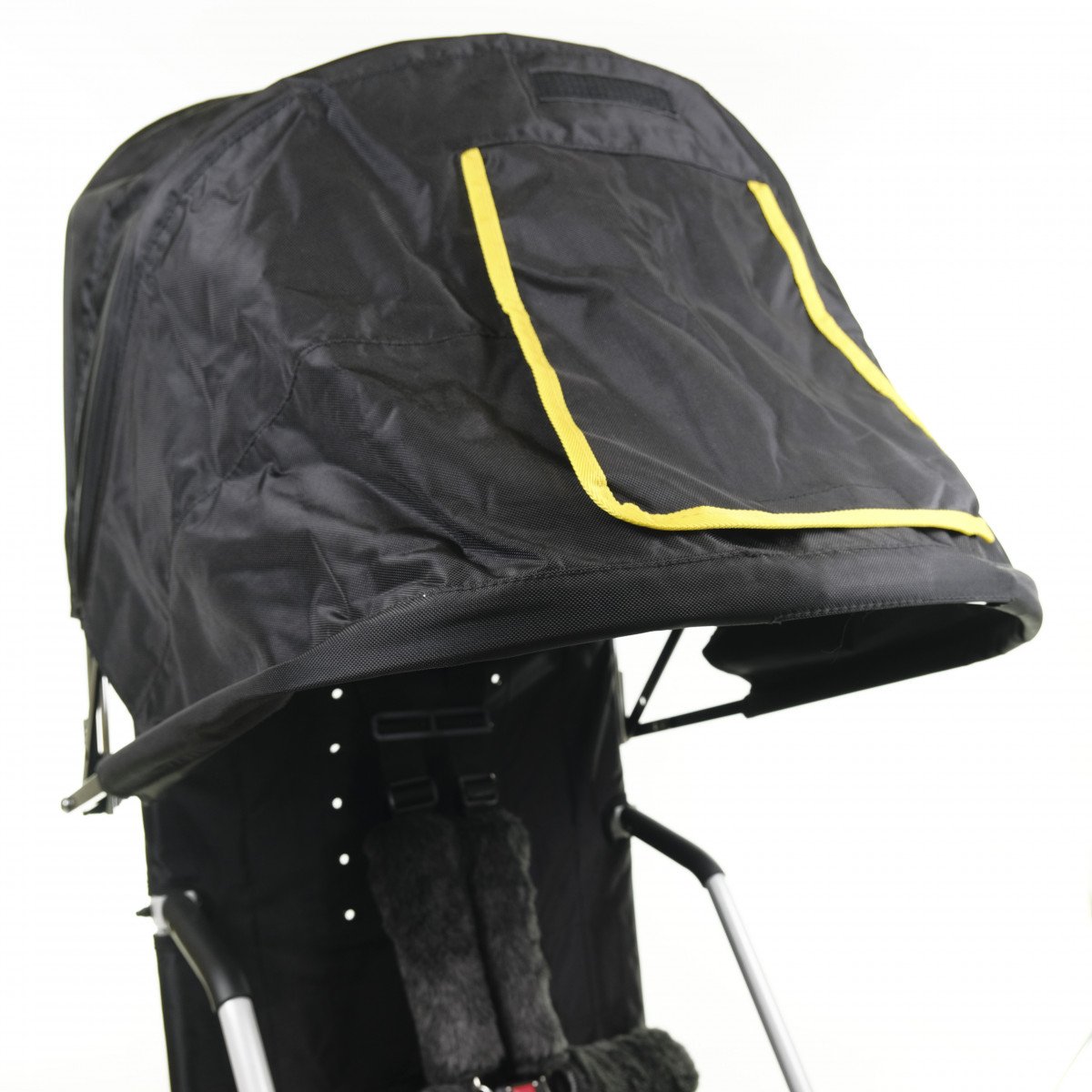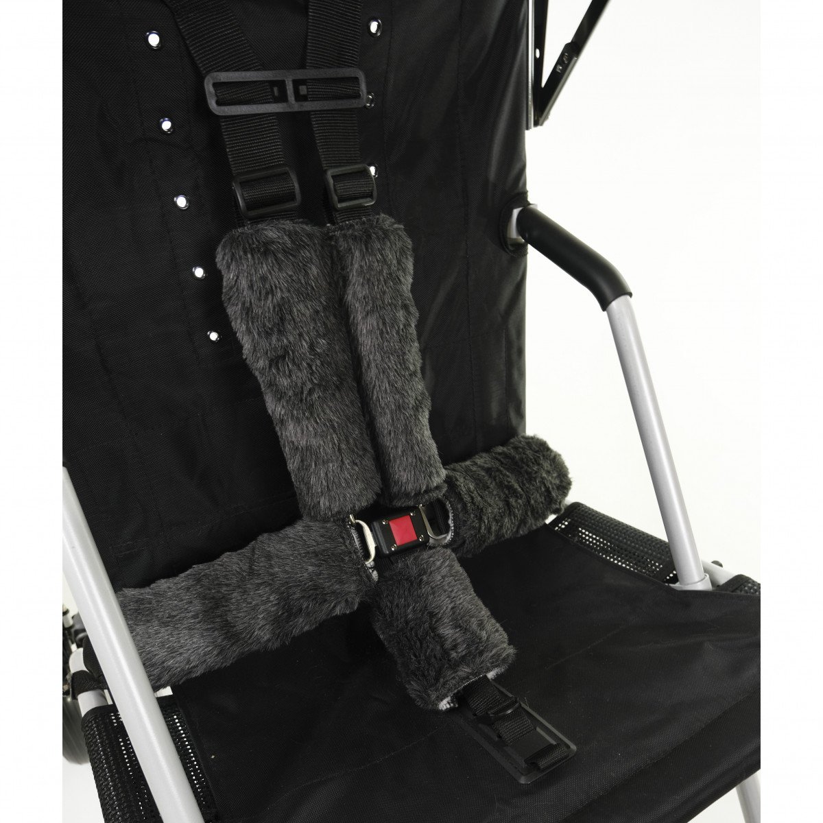 Кроме того, в комплекте с коляской идёт тазовый ремень для позиционирования и надёжной фиксации. Также коляска оснащена пятиточечным ремнем безопасности типа «H». Для повышения комфорта также предусмотрены двусторонние мягкие чехлы для ремней, одна сторона из мягкой имитации овечьей шерсти, а другая - из мягкого велюра. Откидные подставки для ног регулируются независимо и могут быть сняты для удобства при путешествиях.