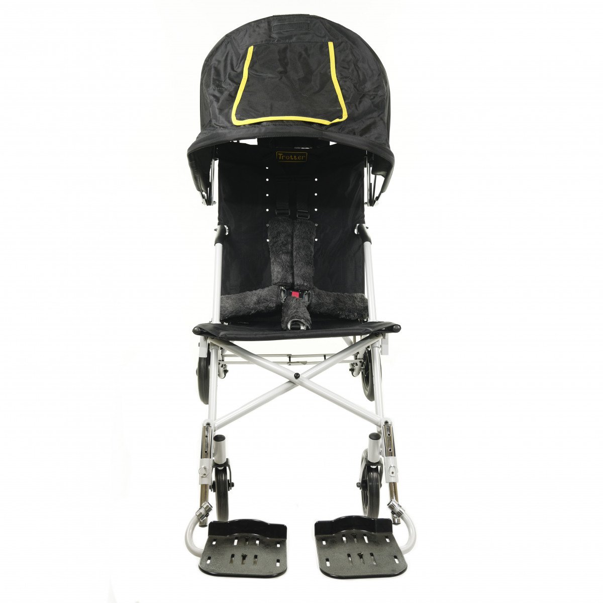 Trotter отличается лёгкой складной рамой с застёжкой-ремнем, которая позволяет удерживать кресло закрытым в сложенном состоянии. Выполнена коляска в чёрном цвете из материалов, которые легко поддаются стирке и обработке химическими веществами. Коляска успешно прошла 2 краш-тестирования: в первом тестировании проводилась транспортировка грузов, а во втором динамический тест с пассажиром весом 59 кг., сидящим лицом вперёд, на скорости 48 км/ч.