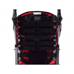 (Сиденье, система самонатяжения сиденья Self-Tensio, регулируемая по углу наклона ручка-толкатель (EZ 12/14/16); Для EZ 18 – раздельные ручки-толкатели, регулируемые подлокотники, контурный подголовник, 5-точечный ремень, навес, блокировка передних колёс, цельнолитные колёса)