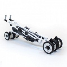 Коляска складывается одним движением, занимает минимум места и помещается в багажник автомобиля — это особенно удобно для активных семей, которые часто в пути. Обивка выполнена из износостойких и влагонепроницаемых материалов, а приятные пастельные цвета придают модели современный, аккуратный вид.
