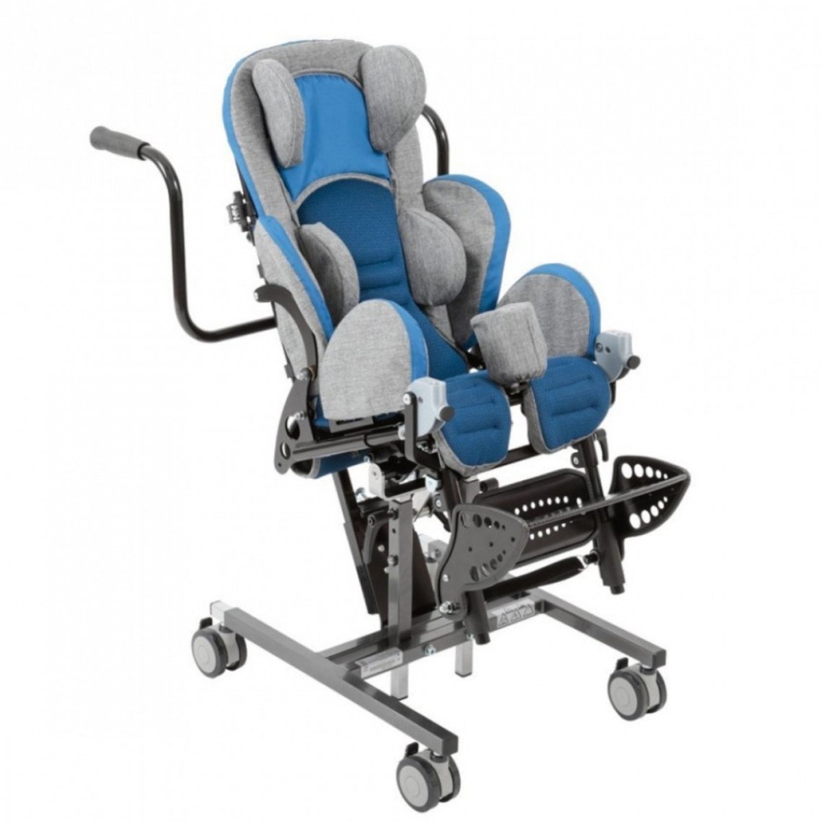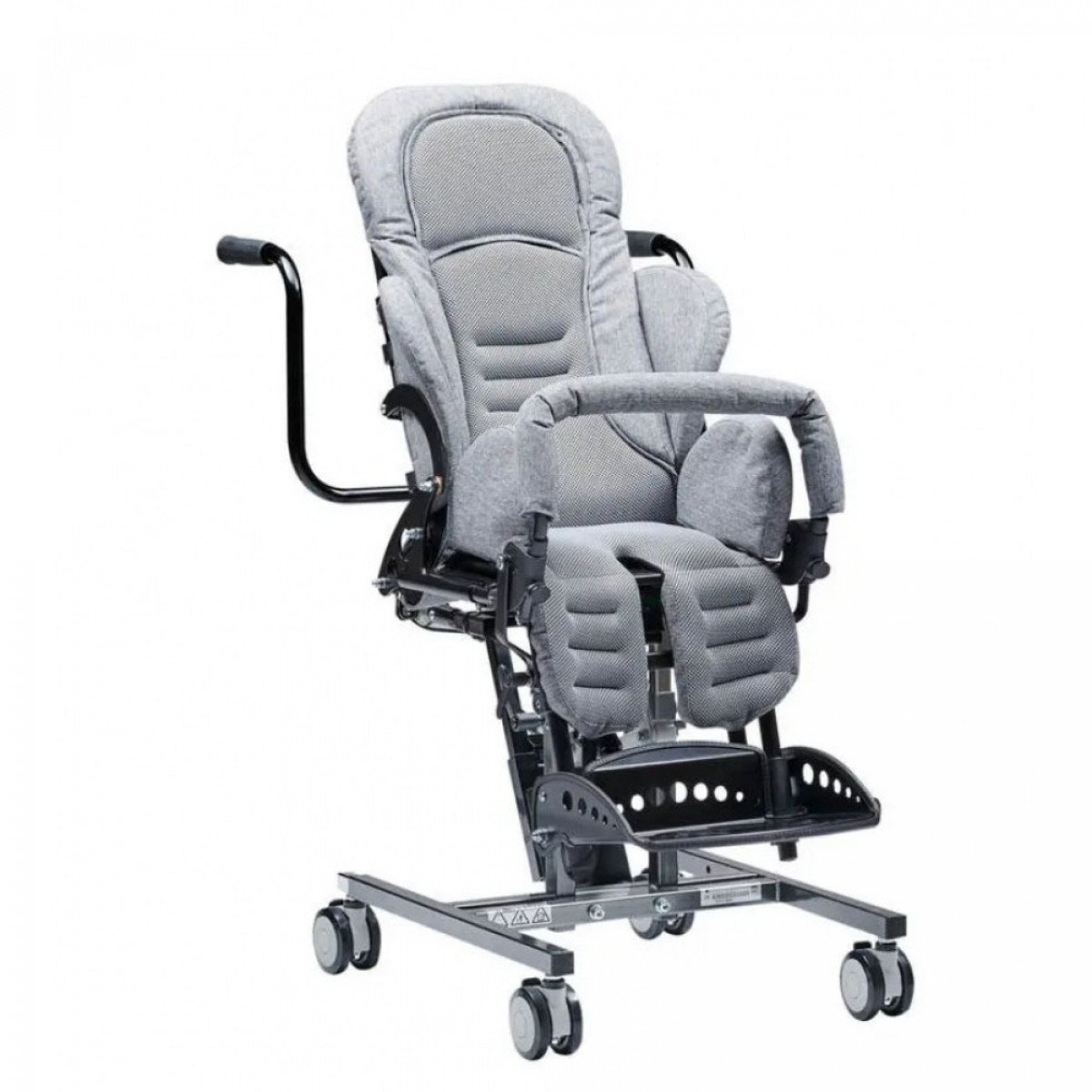 Сиденье, комнатное шасси, спинка MPS (короткая), съёмный регулируемый по углу наклона подголовник (контурный /трёхсекционный), боковые поддержки с функцией отведения анатомические, абдуктор, майка неопрен + тазовый фиксатор неопрен, ремни на стопы, столик.