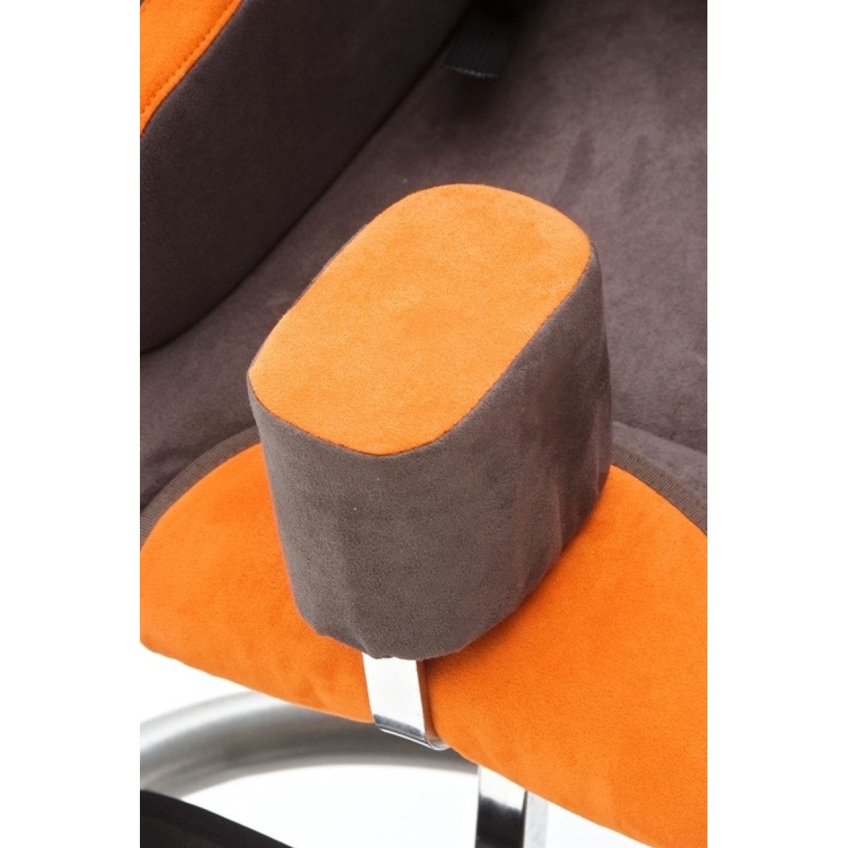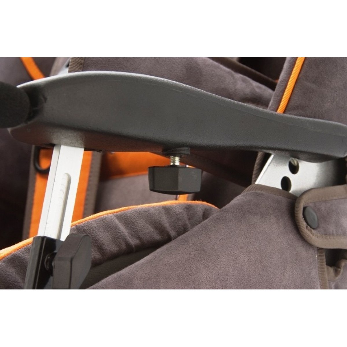 Кресло имеет очень удобные подлокотники с регулировкой по высоте, а также сплошную настраиваемую подножку с фиксирующими ремешками и большой опорой для ног.