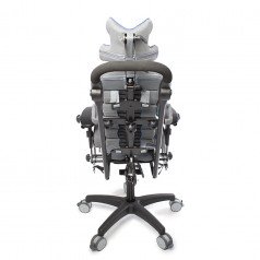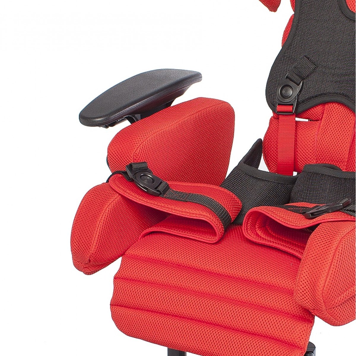 Кресло оснащено специальным подголовником, который позволяет поддерживать голову в правильном положении, уменьшая нагрузку на шею. Регулируемые подлокотники обеспечивают дополнительный комфорт и могут быть настроены под индивидуальные потребности пользователя. Боковые упоры для туловища помогают удерживать корпус в вертикальном положении, что особенно важно для тех, кто не может сохранять устойчивость самостоятельно.