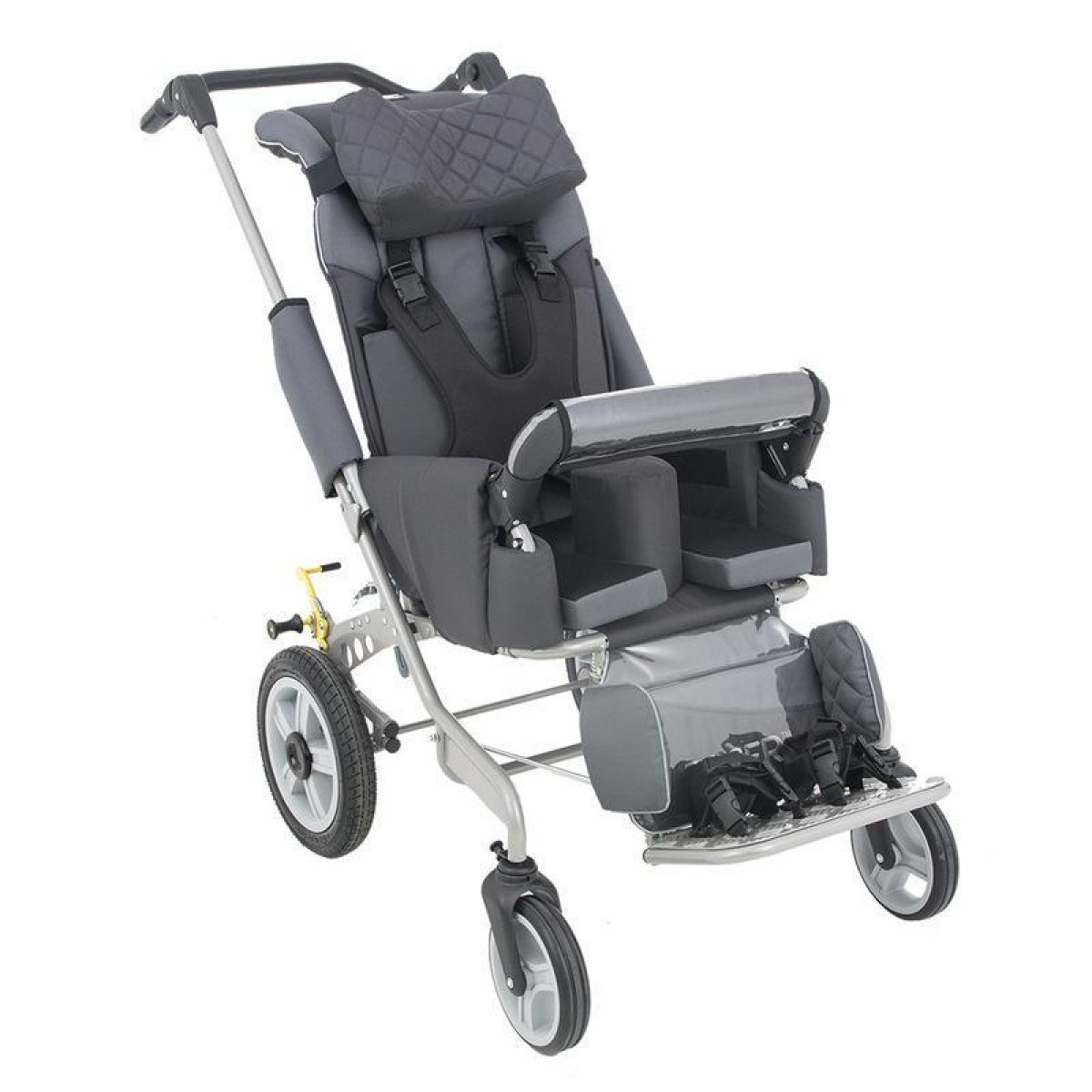 Благодаря простой и лёгкой конструкции коляску легко транспортировать. Система поддержек и ремней безопасности, а также устойчивая конструкция обеспечивают высокий уровень безопасности, а отражающие элементы обивки улучшают видимость коляски на дороге. Спинка легко наклоняется назад, а регулируемая ручка способствует улучшенной маневренности.