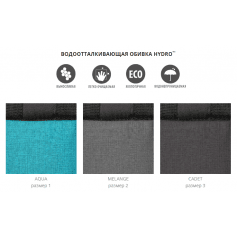 - Цвет водоотталкивающей обивки Hydro: aqua, melange, cadet