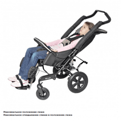 - Подножка с регуляцией длины и угла наклона оснащённая 2-точечными ремнями стабилизирующими стопы