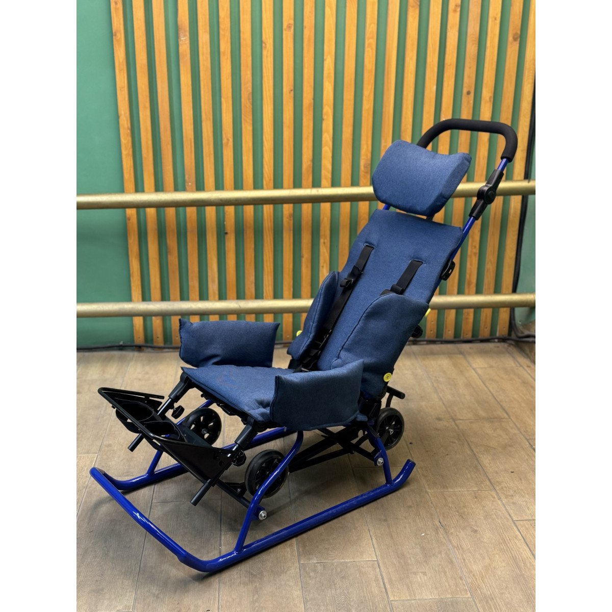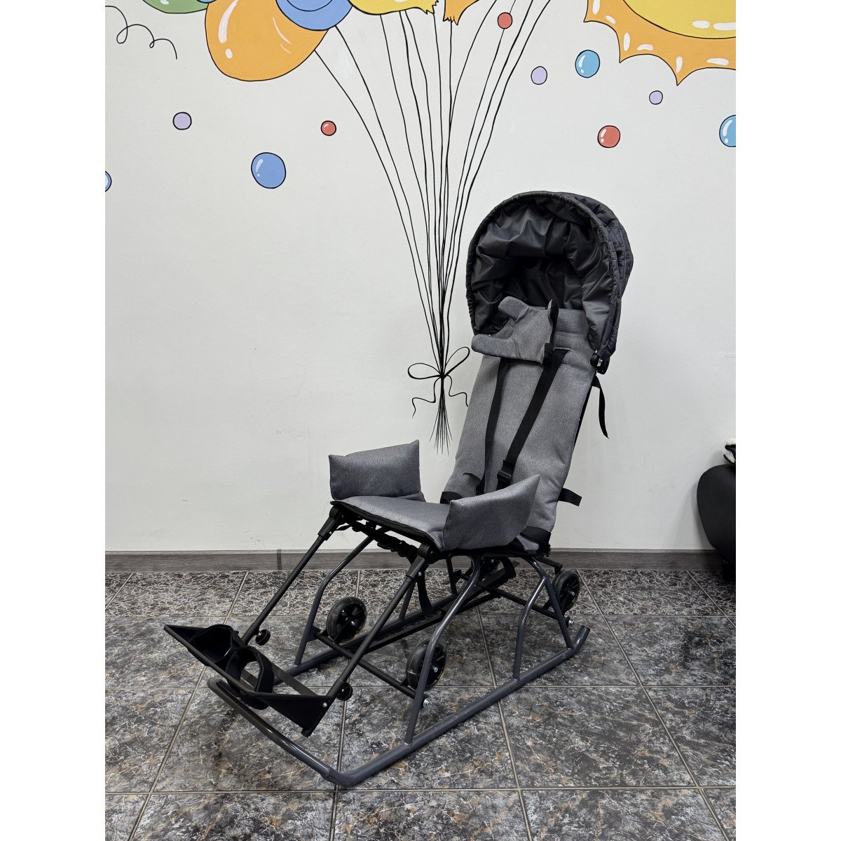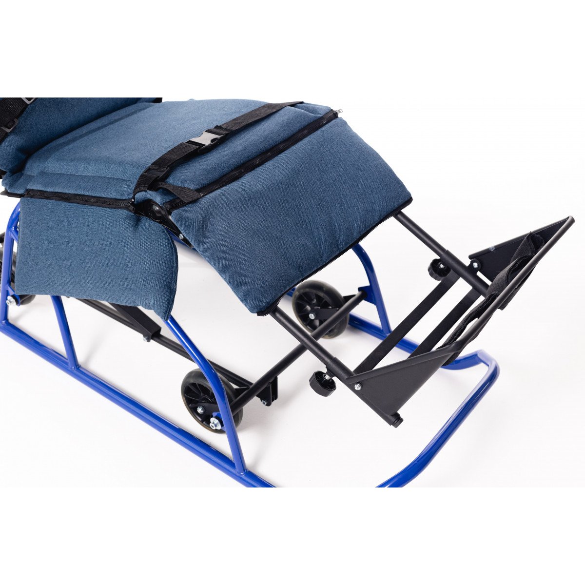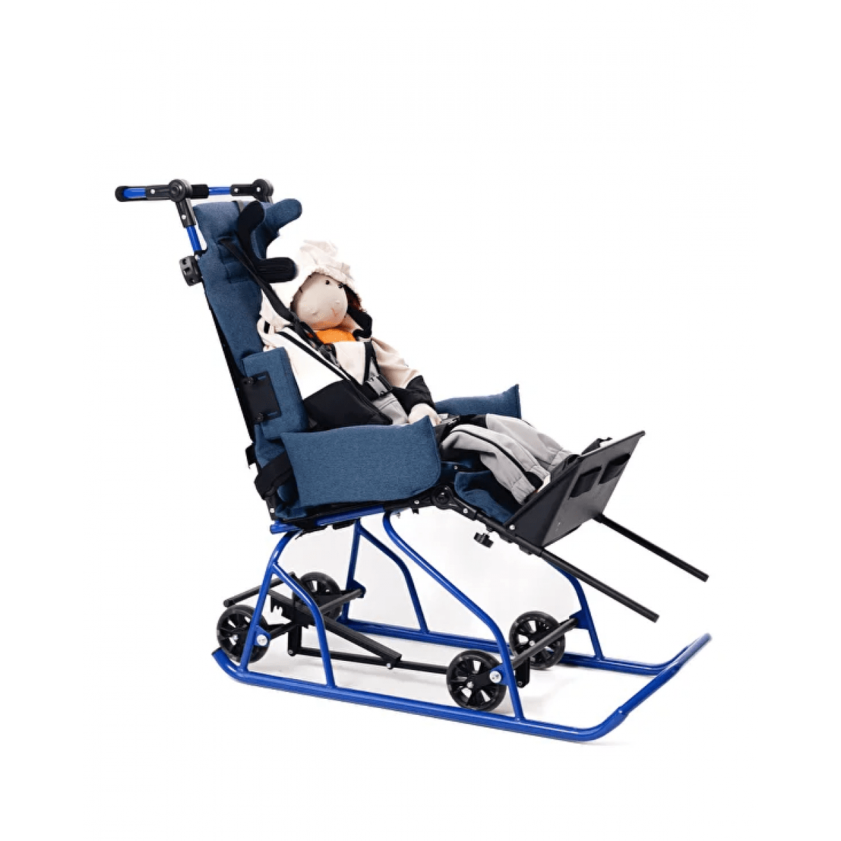 Конструкция санок продумана до мелочей: регулируемая спинка и подножка позволяют подобрать удобное положение для ребёнка. Чехол изготовлен из прочного влагозащитного материала болонья, который надёжно защищает от ветра и осадков. Внутренний подклад из искусственного меха (овчины) сохраняет тепло и создаёт уют даже в морозную погоду.