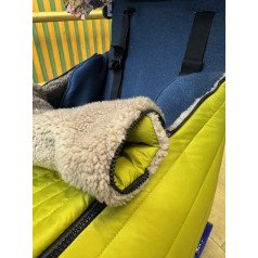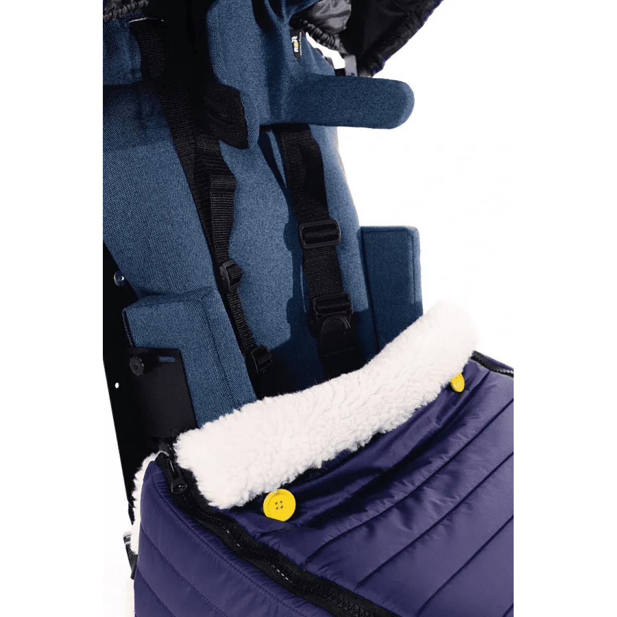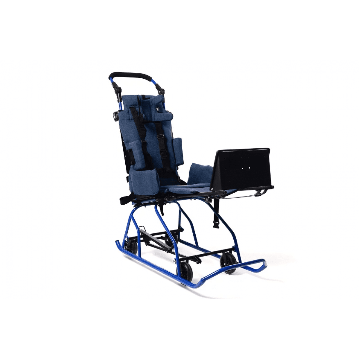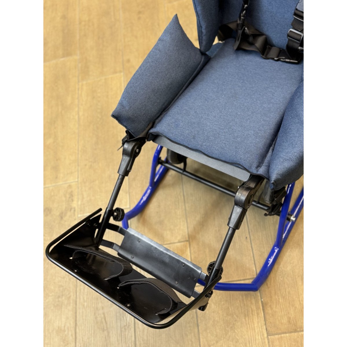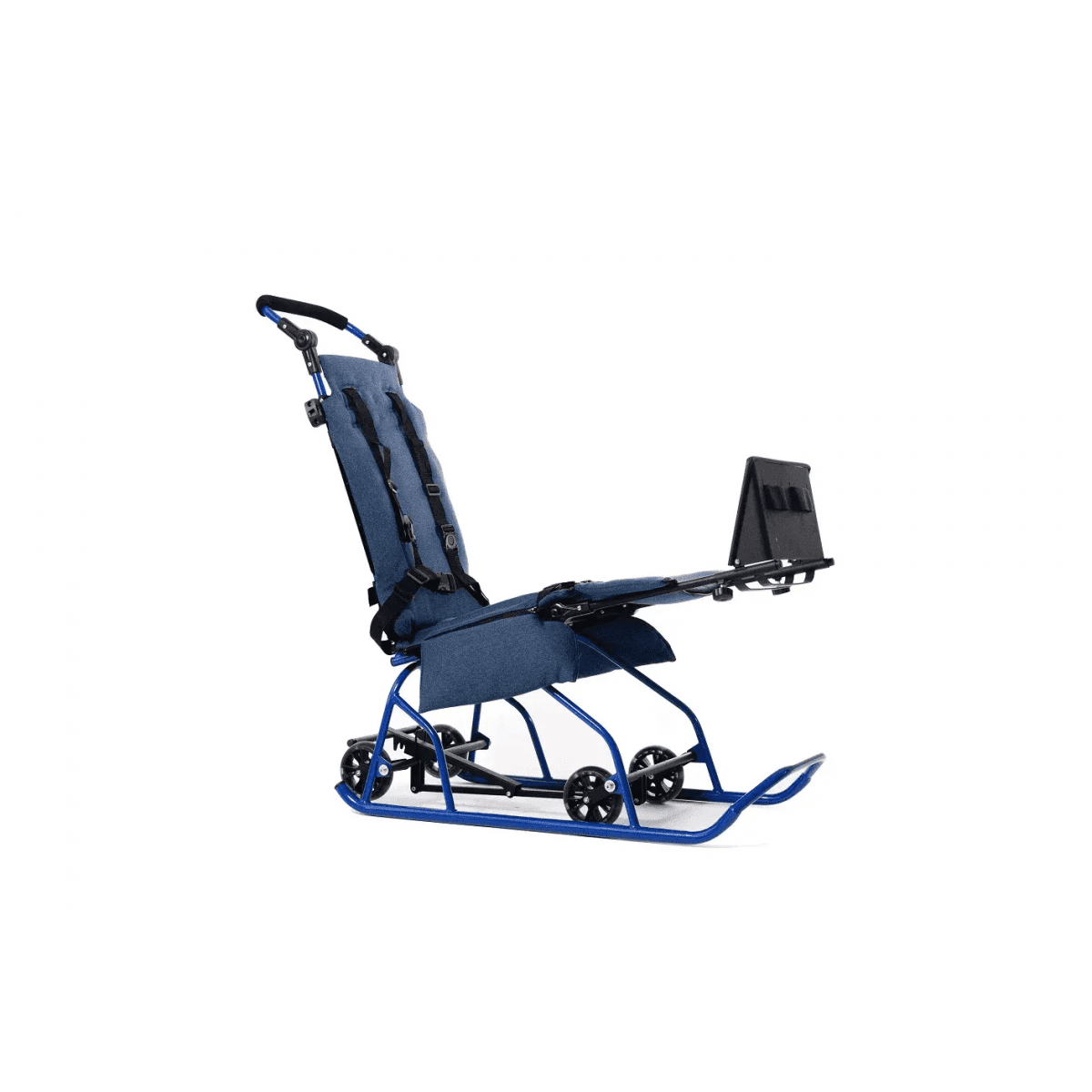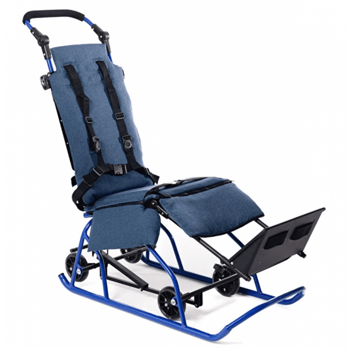 Конструкция санок продумана до мелочей: регулируемая спинка и подножка позволяют подобрать удобное положение для ребёнка. Чехол изготовлен из прочного влагозащитного материала болонья, который надёжно защищает от ветра и осадков. Внутренний подклад из искусственного меха (овчины) сохраняет тепло и создаёт уют даже в морозную погоду.