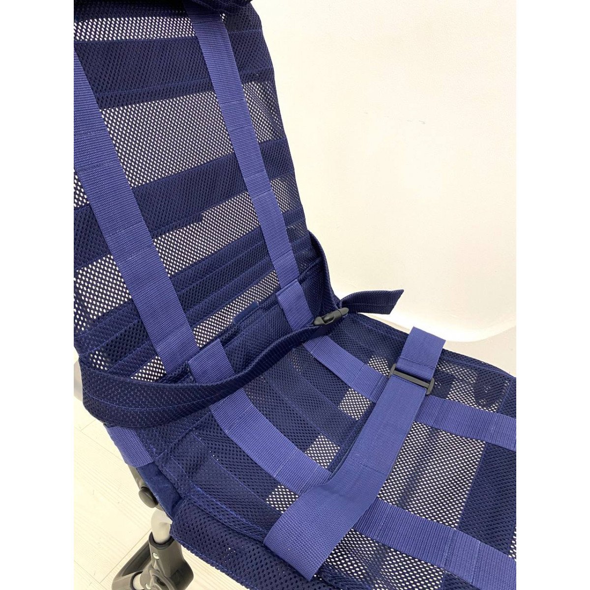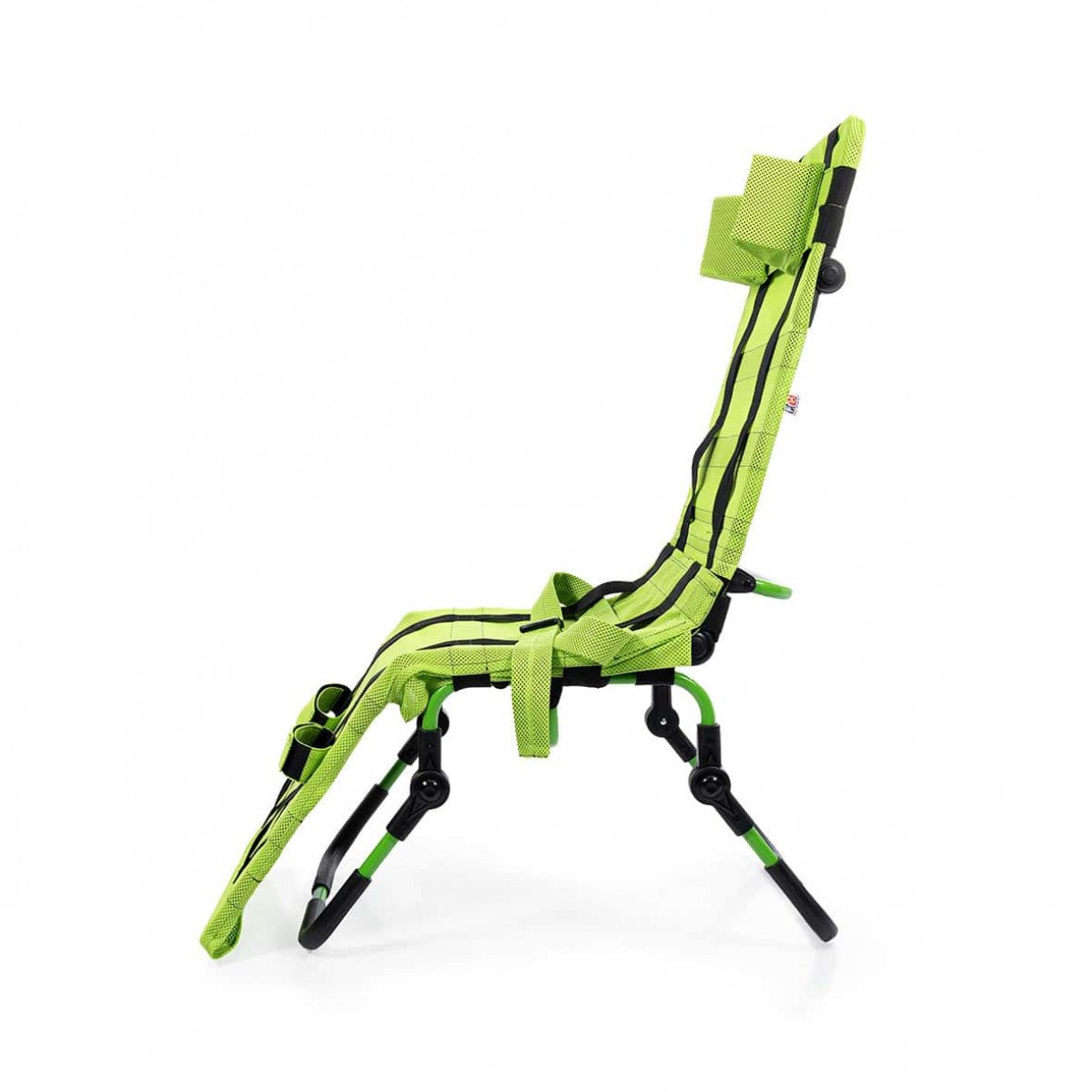 Лёгкая рама была изготовлена из алюминиевых трубок, заполненных полиуретановой пеной, предотвращающей попадание воды внутрь. Натянутая на него перфорированная обивка из синтетической ткани инертна к воздействию воды, а её структура влияет на время высыхания шезлонга.
