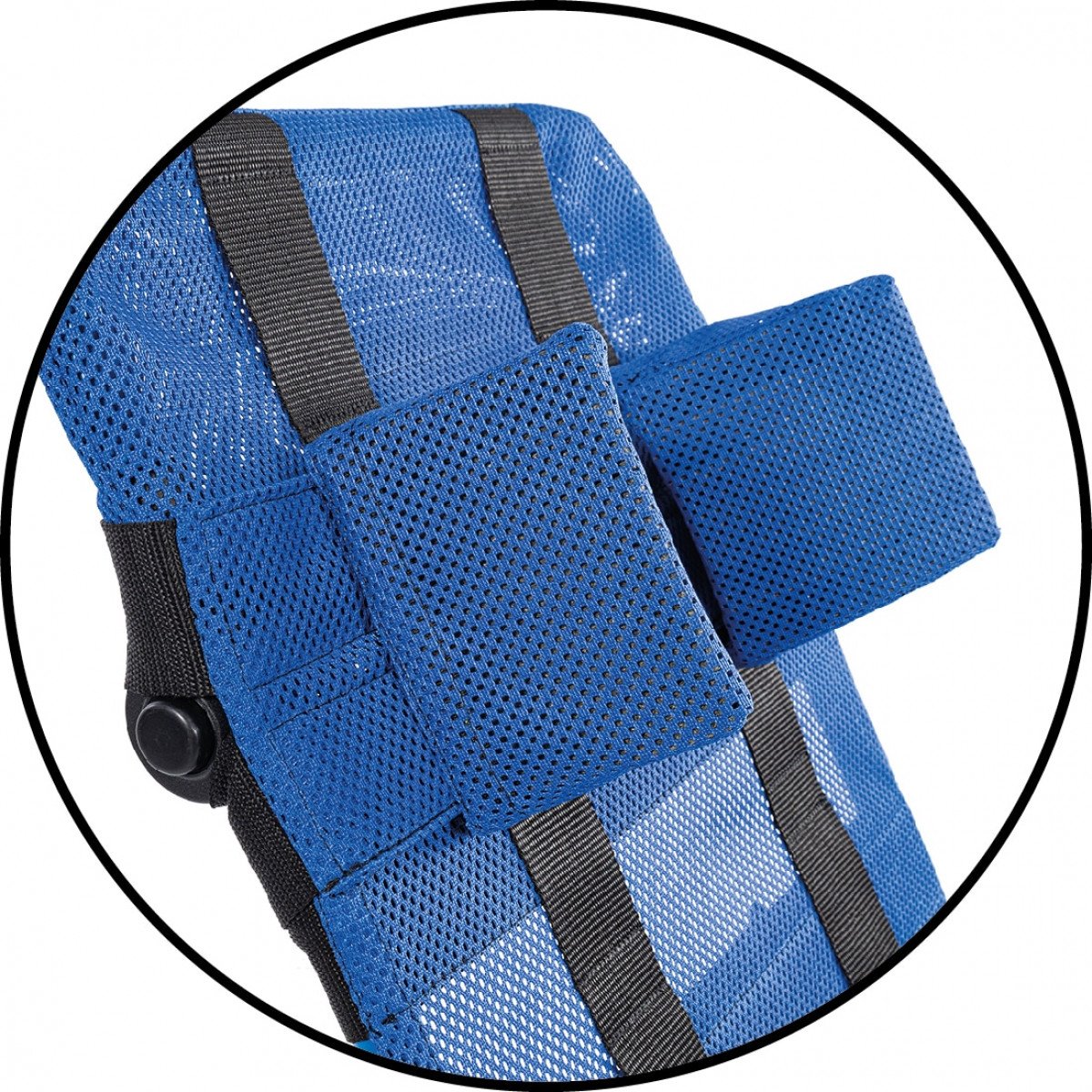 Подголовник кресла можно настраивать в зависимости от роста и физиологических особенностей ребёнка. Это предотвращает наклоны головы и обеспечивает ей надёжную опору. Специально разработанный ремень позволяет надёжно фиксировать тело малыша, что предотвращает его случайное выскальзывание или изменение положения. Держатели голени помогают удерживать ноги в безопасном и удобном положении, тем самым исключая возможность падения или поворота.