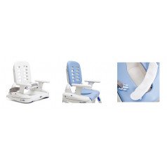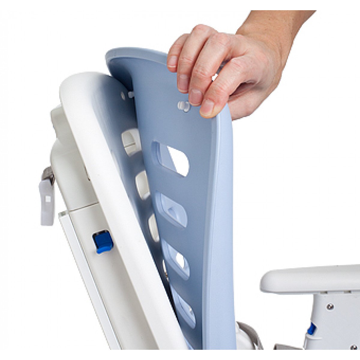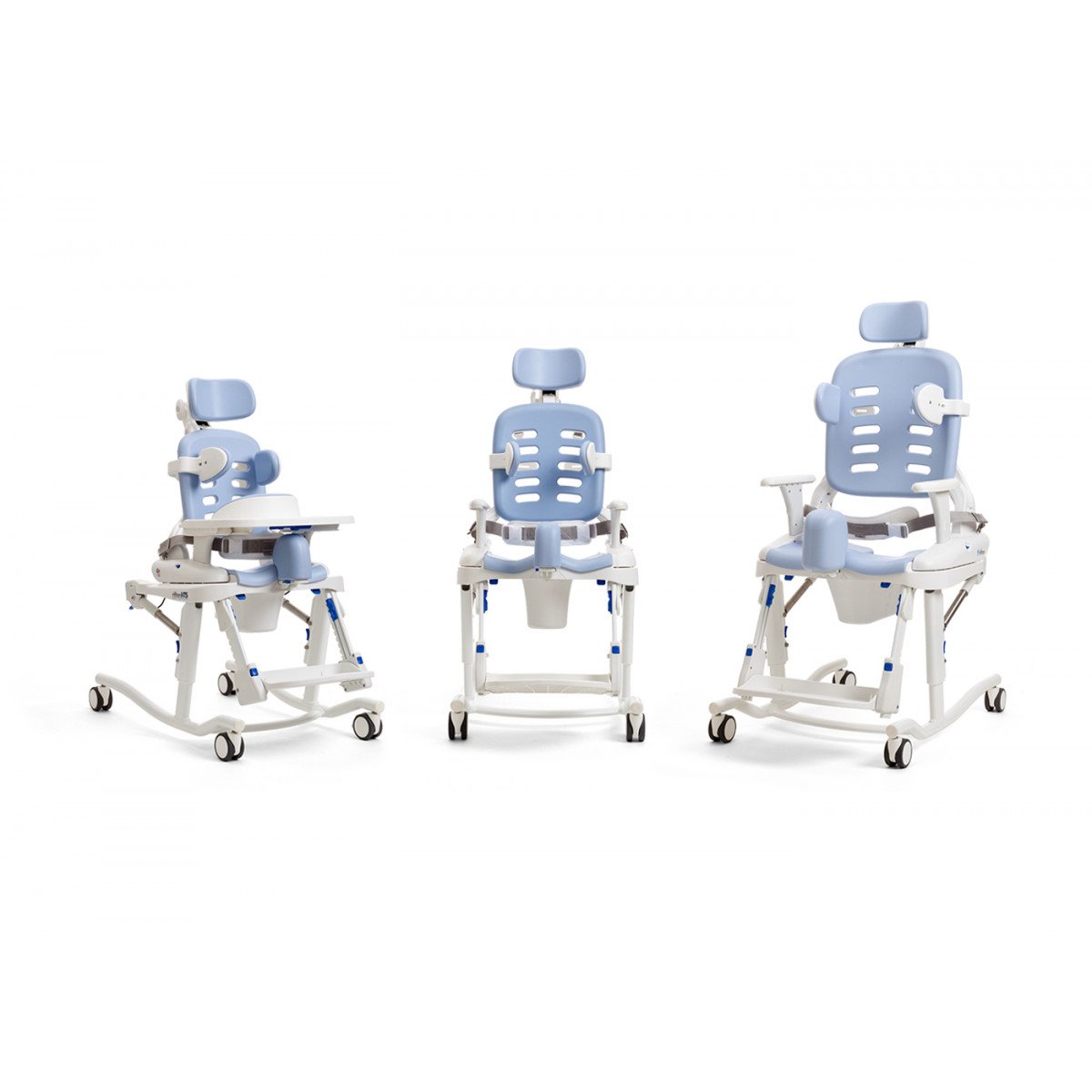 Спинка кресла может регулироваться вперёд на 6° (для удобного положения при использовании туалета), назад на 6° и на 18° назад для комфортного принятия душа или мытья волос. Одна рама подходит для сидений маленького и среднего размеров, с высотой регулировки от 37 до 53 см. Для больших сидений необходимо использовать отдельную раму. Ширина кресла регулируется добавлением одного или двух боковых блоков к подлокотникам, которые также могут быть установлены в двух положениях.