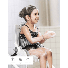 - Варианты использования: рама над унитазом; стул, установленный на унитаз; стул с санитарным устройством; кресло в ванне; кресло для душа; стул для мытья головы