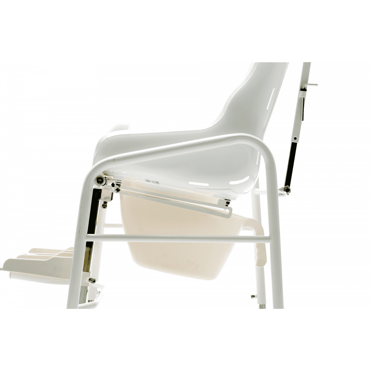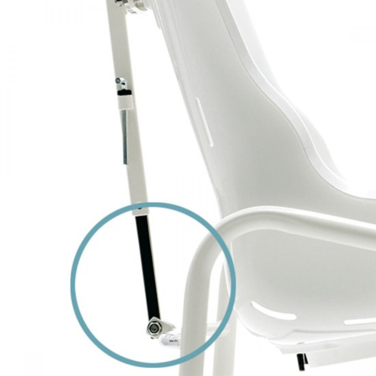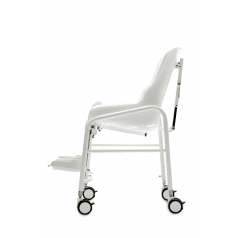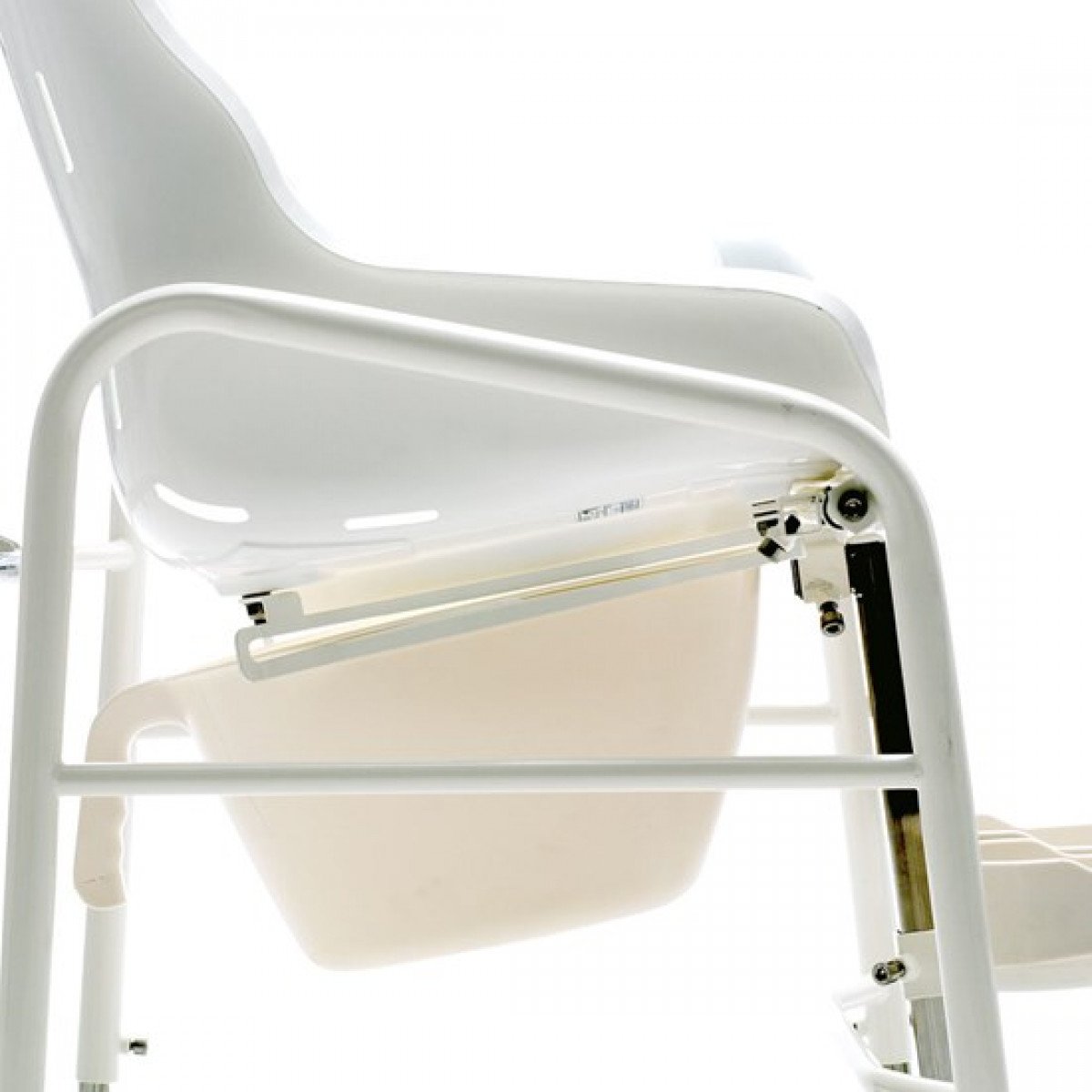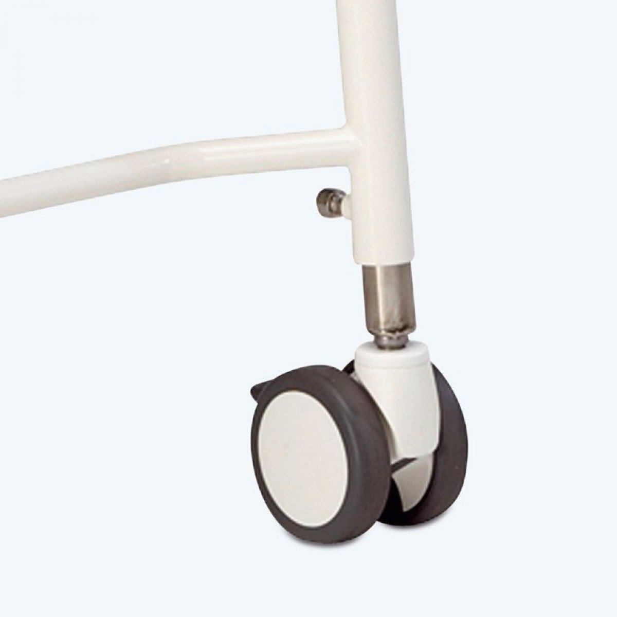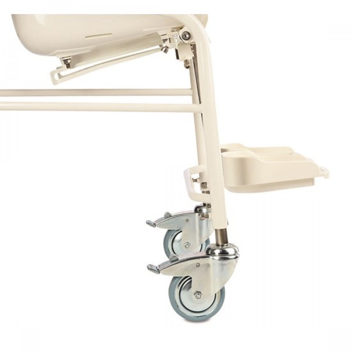 Рама и колёса кресла выполнены из нержавеющей стали, что делает конструкцию прочной, устойчивой к коррозии и долговечной. Такой материал подходит для использования в условиях повышенной влажности, обеспечивая надёжную эксплуатацию в ванной комнате. Колёса позволяют легко перемещать кресло, делая процесс использования удобным как для ребенка, так и для родителей. Кресло можно легко трансформировать и переносить из одного места в другое.
