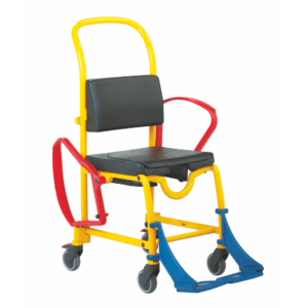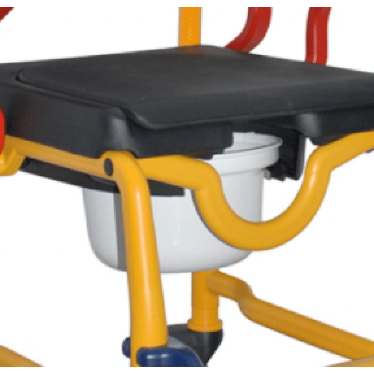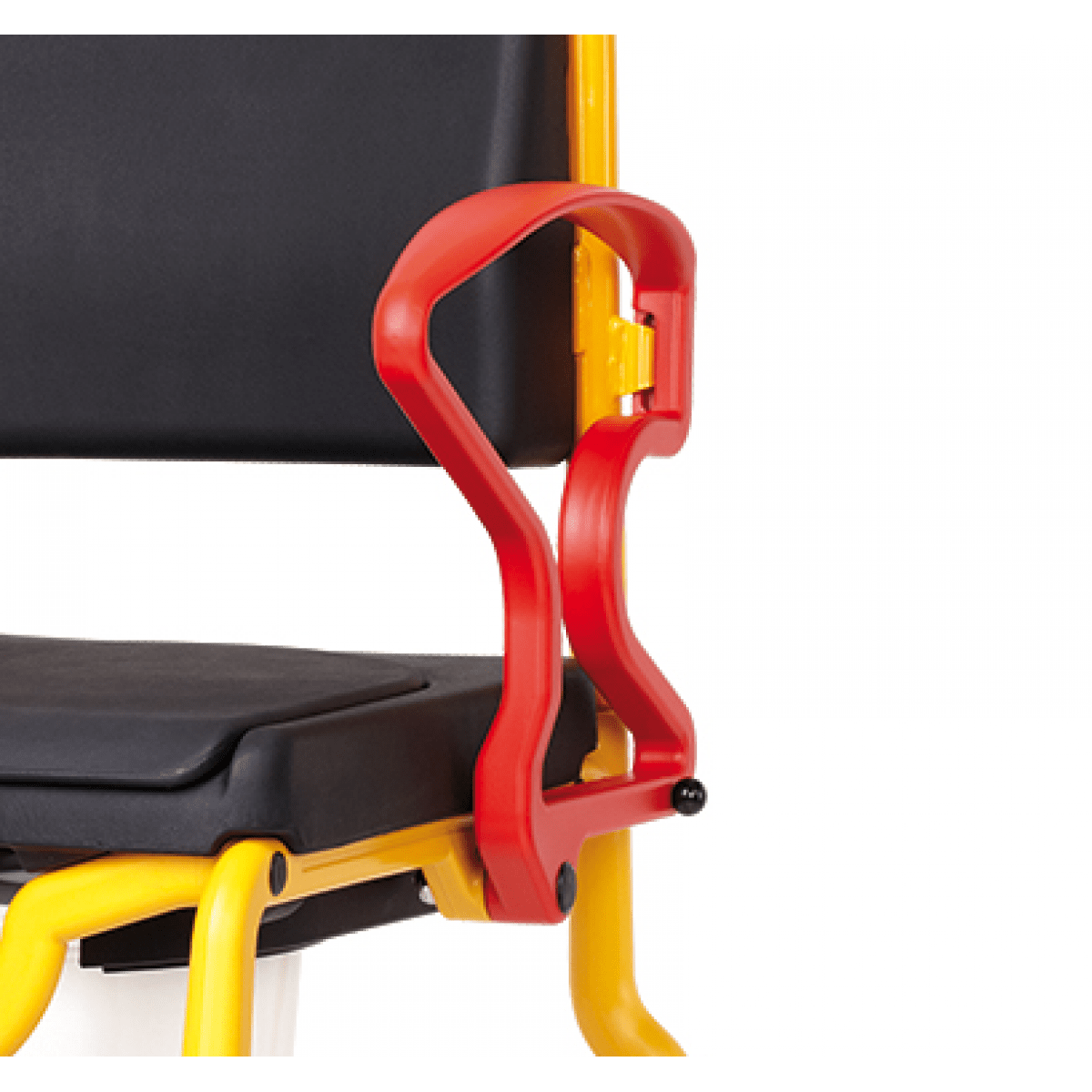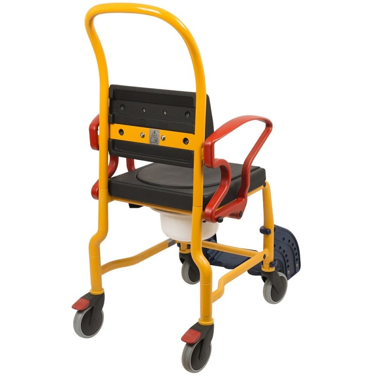 Стул оснащён откидными поручнями с функцией фиксации, что способствует удобству при посадке и высаживании. Съёмные подножные опоры могут регулироваться по высоте. Мягкое сиденье с крышкой из полиуретана обеспечивает комфорт во время использования, а эргономичная спинка поддерживает спину и позволяет находиться в удобном положении. В дополнение стул комплектуется туалетным гигиеническим съёмным судном, что облегчает процесс ухода и поддержания гигиены.
