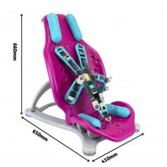 Сиденье имеет специальные вентиляционные отверстия, которые выполняют несколько важных функций: они способствуют циркуляции воздуха, отводят излишнюю воду и являются различными уровнями крепления ремней и поддержек. Это обеспечивает максимальную настройку и индивидуализацию под нужды каждого ребёнка.