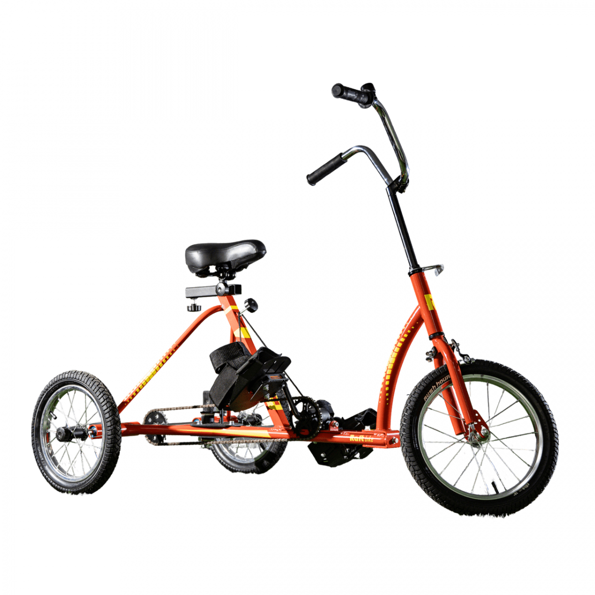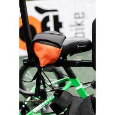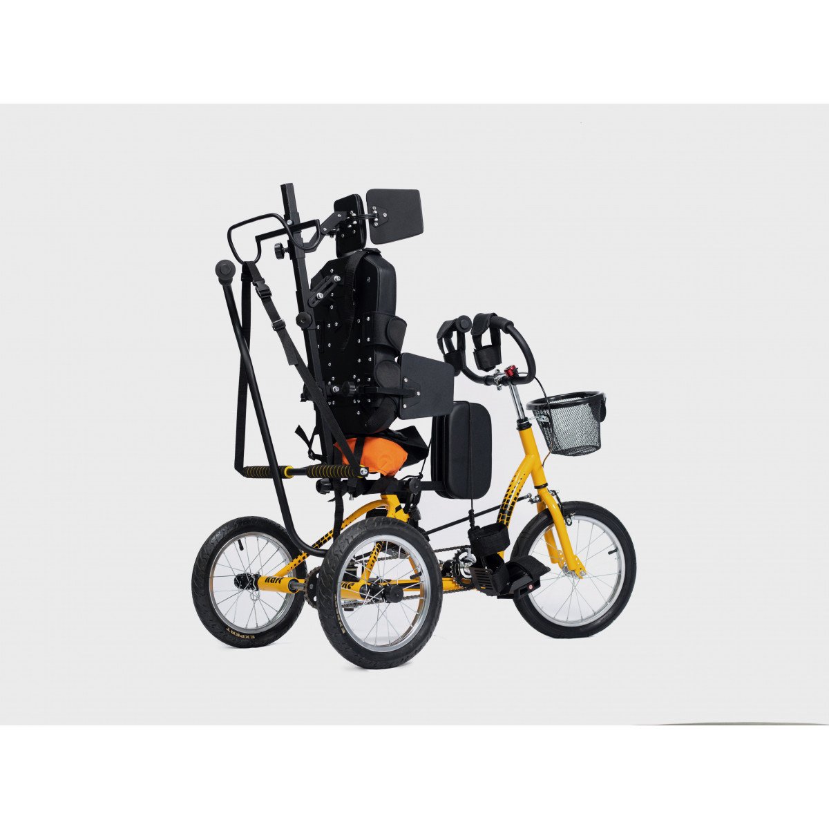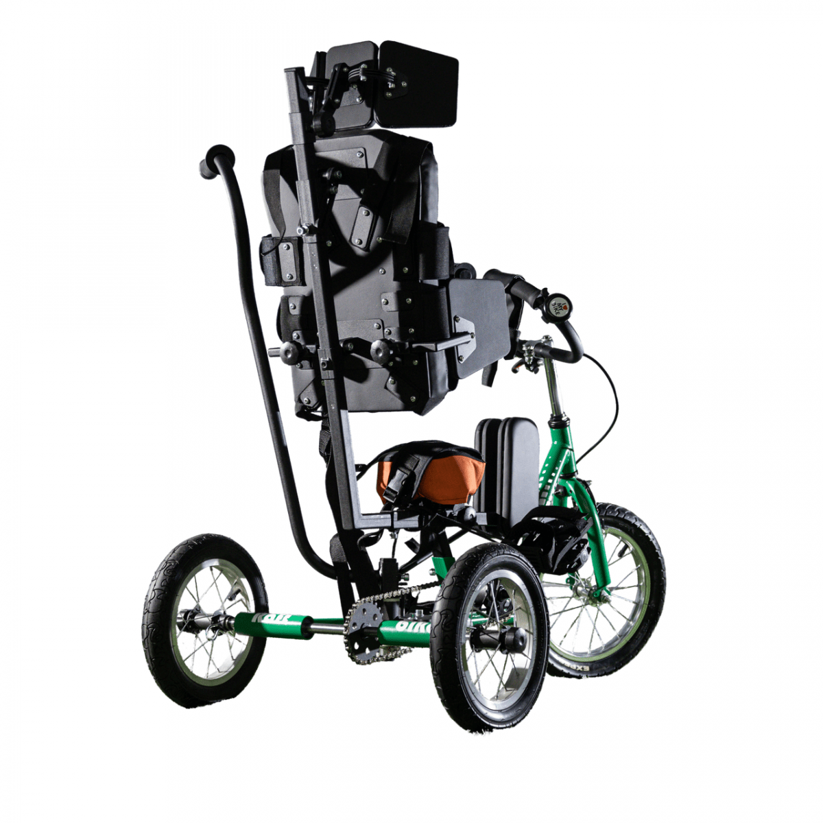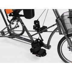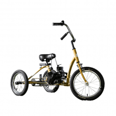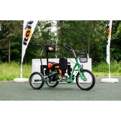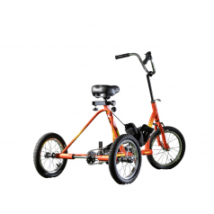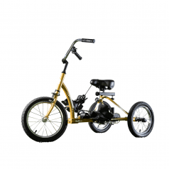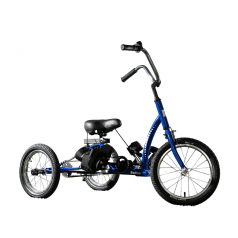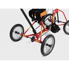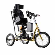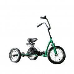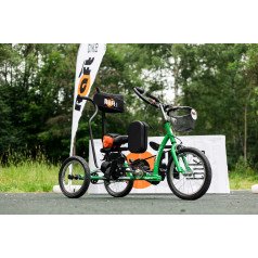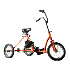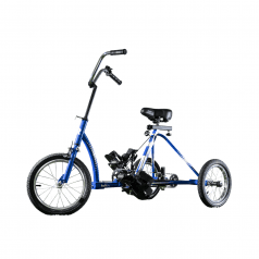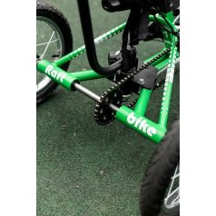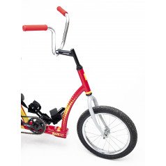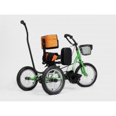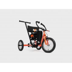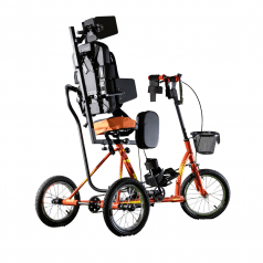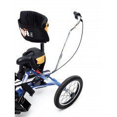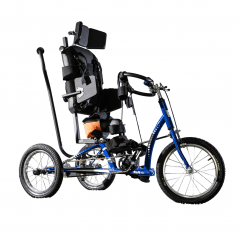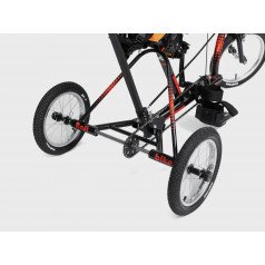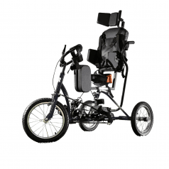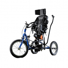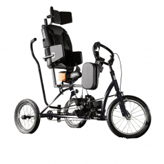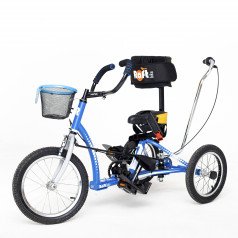 Велосипед обладает лёгким ходом благодаря уникальной геометрии рамы. Даже при минимальном усилии велосипед приводится в движении, что позволяет использовать его даже деткам со слабым тонусом мышц. Конструкция рамы выполнена таким образом, что велосипед легко может быть собран и разобран. Компактный, легко помещается в багажник автомобиля. Эргономическое сидение регулируется по высоте. Стояночный тормоз блокировки движения позволяет использовать велосипед в качестве комнатного тренажёра.