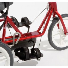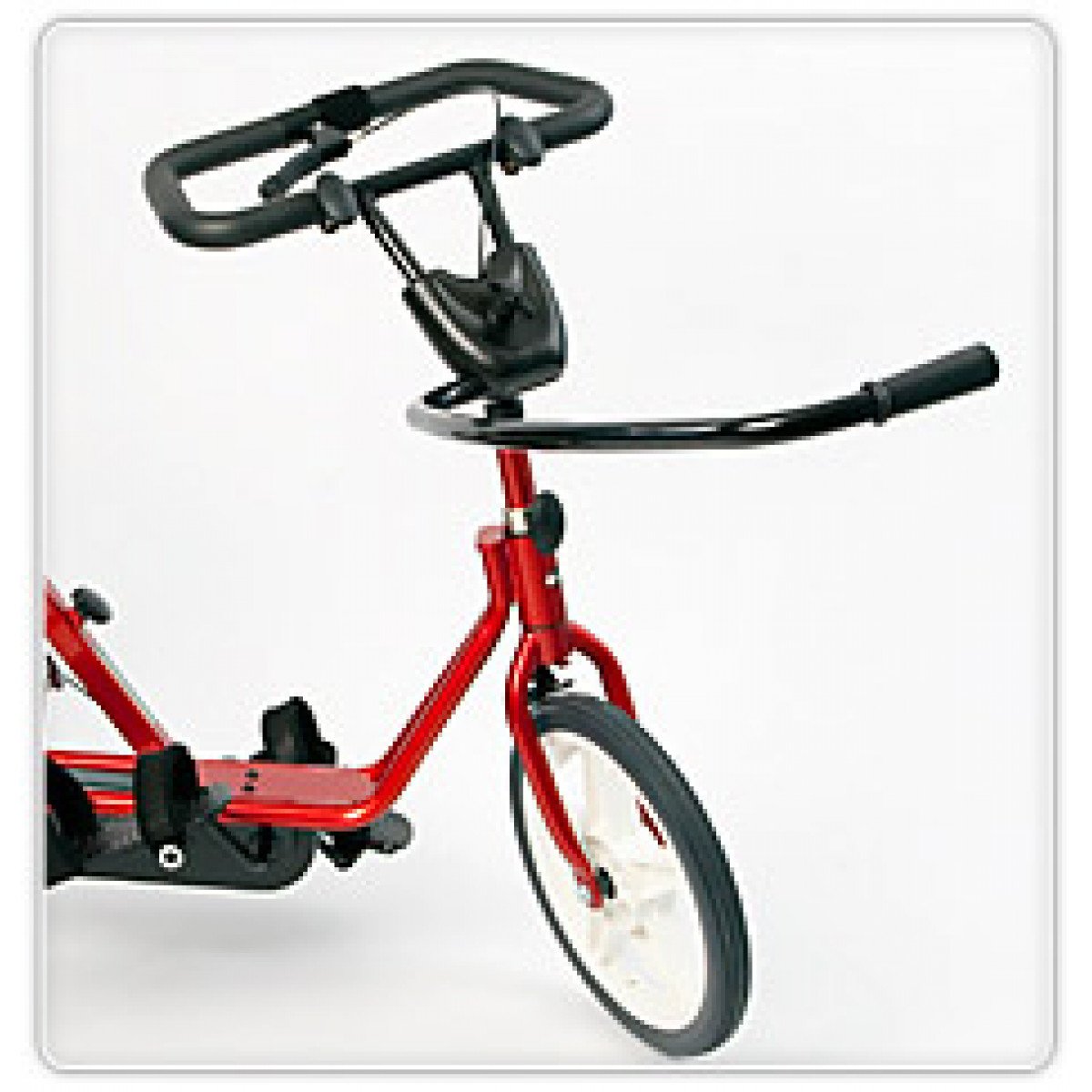 Велосипед имеет исключительно лёгкий ход благодаря большим несминаемым колёсам и одноосевому принципу движения колеса. Привод осуществляется на одно заднее колесо, что обеспечивает отсутствие торможения конструкции при прохождении поворотов наружным колесом. В результате инвалиды с очень выраженной слабостью могут пользоваться велосипедом. Также благодаря приводу на одно колесо стало возможно широко разнести задние колёса для устойчивости и безопасности.